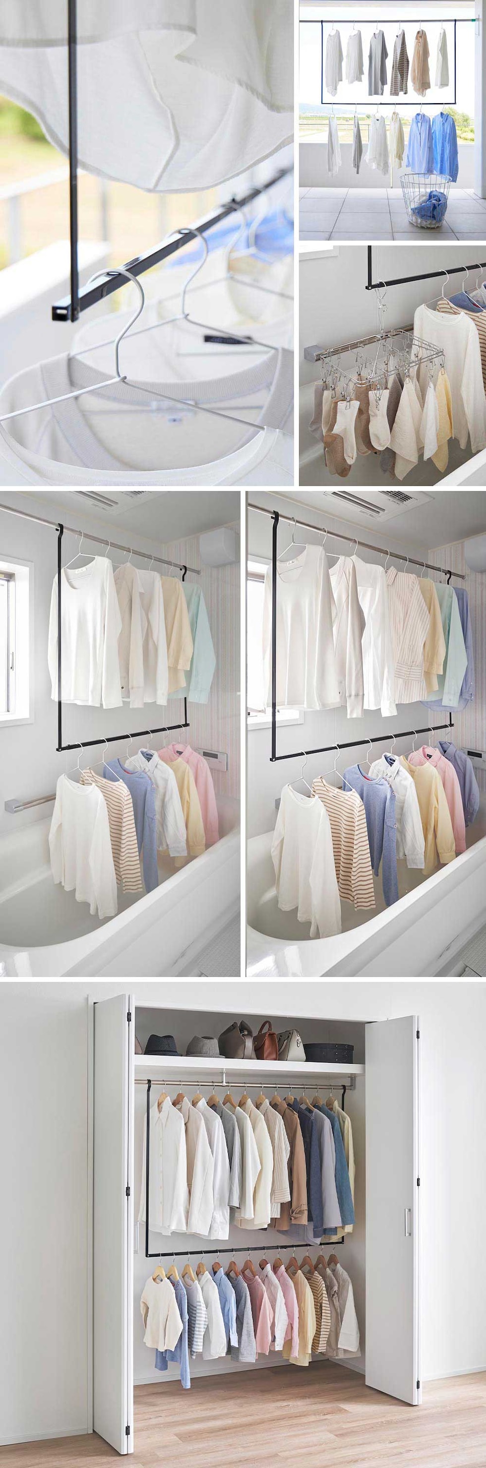 | 直径3cm以内・幅86cm以上のランドリーパイプ・物干し竿 ※サイズや形状、材質によっては設置できない場合があります。 |
