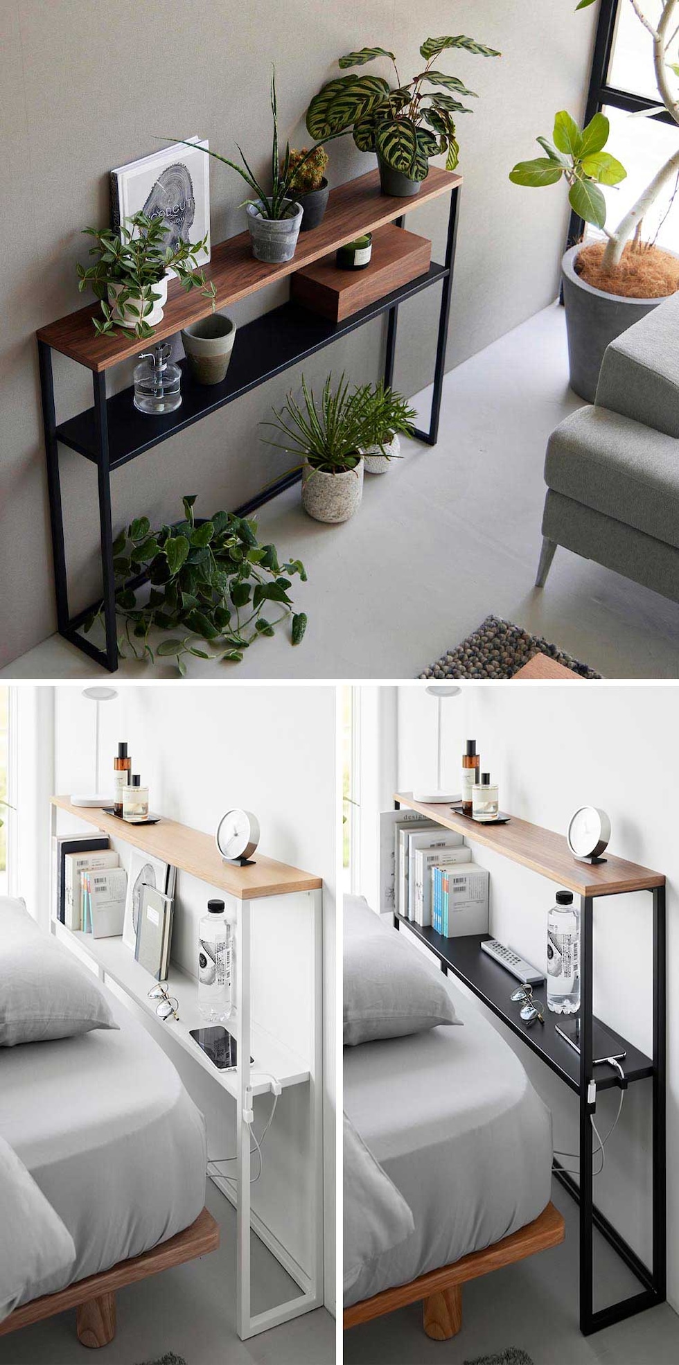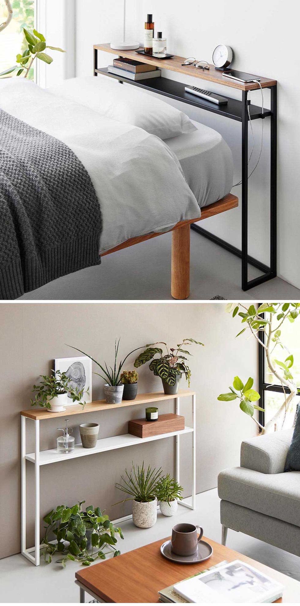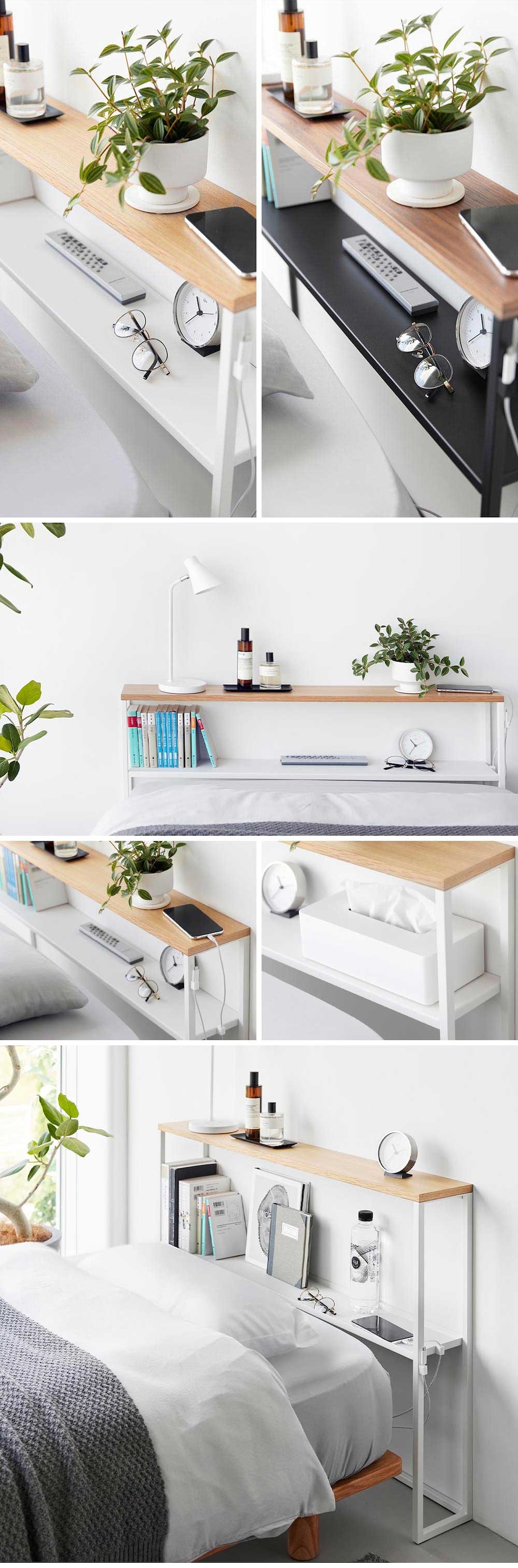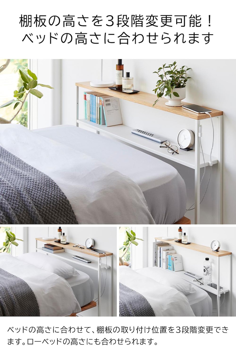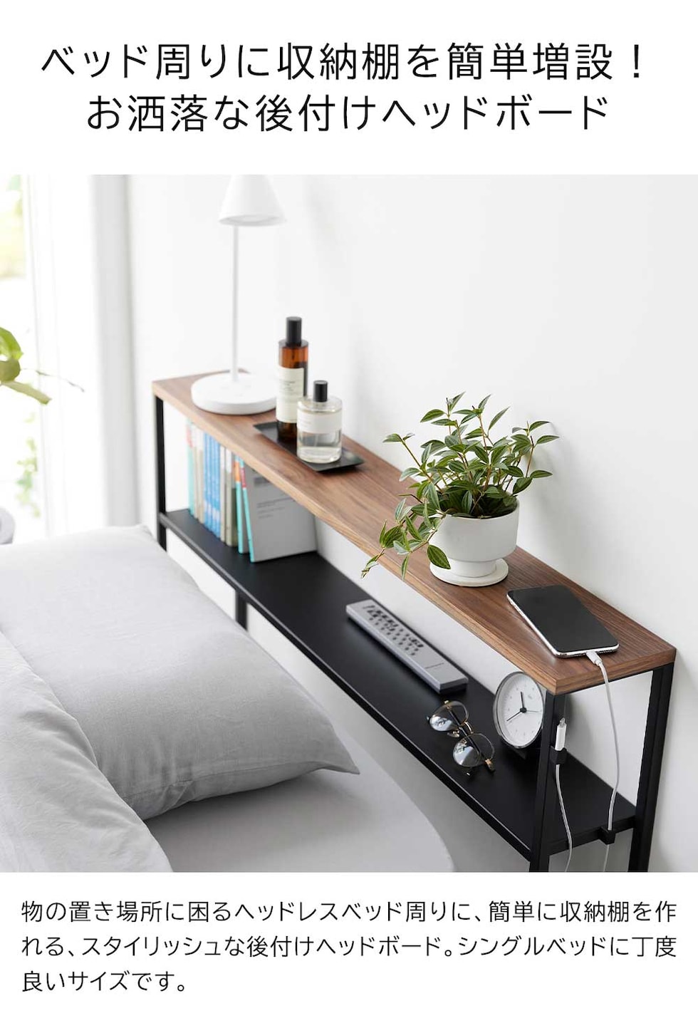 タワー 山崎実業 tower 棚板が動く後付けヘッドボード ≪ブラック 1683≫ ケーブルホルダー付き 天然木 天板 飾り棚 ベッド 後付け棚 シングル スリム 収納 高さ調整