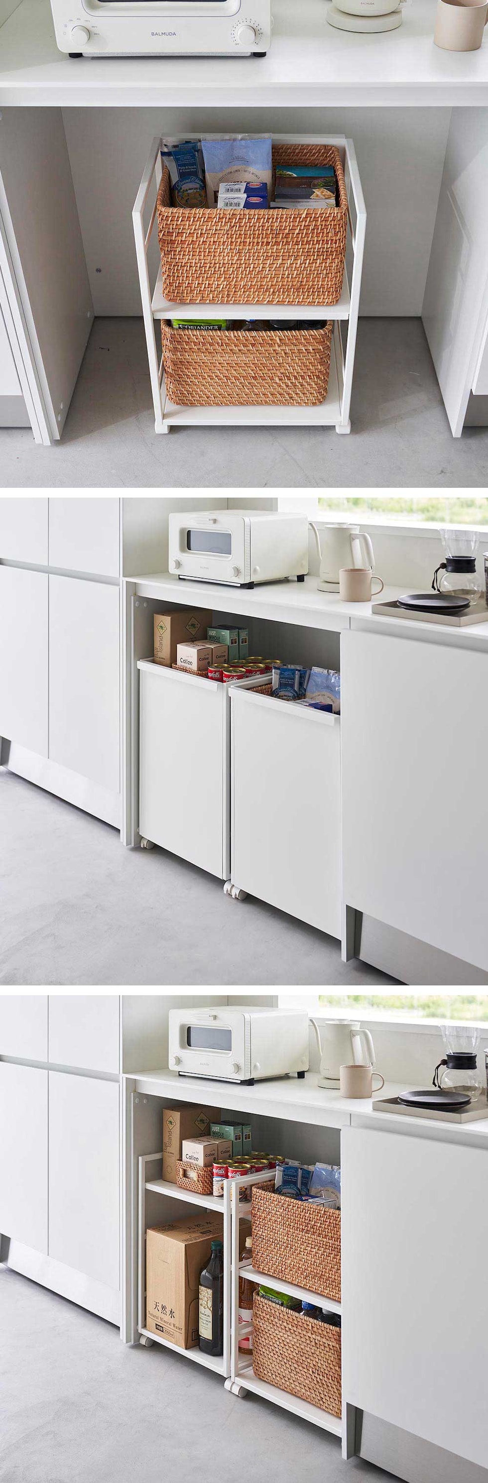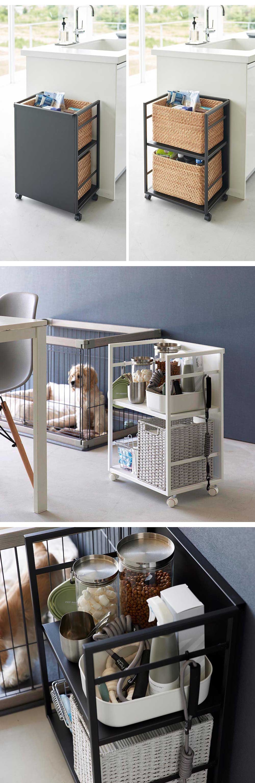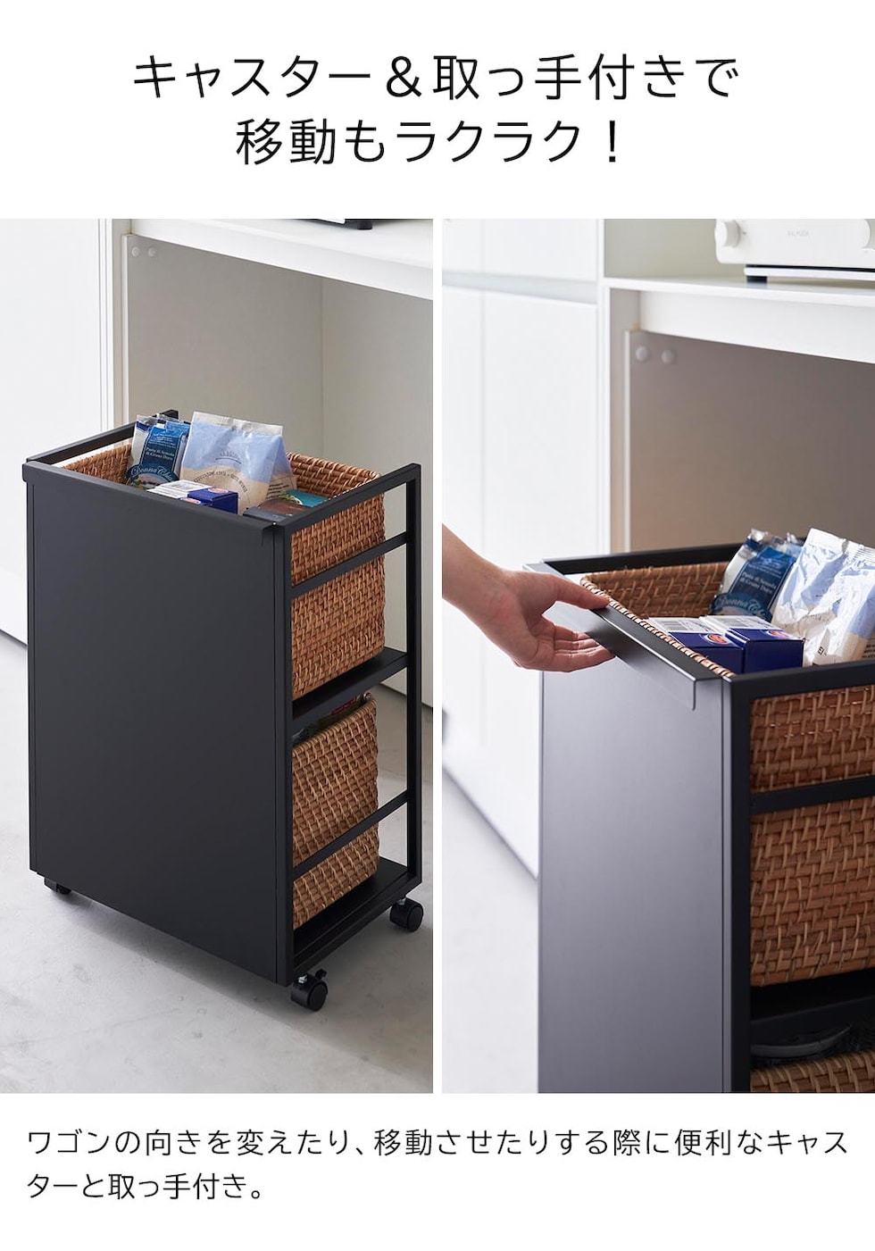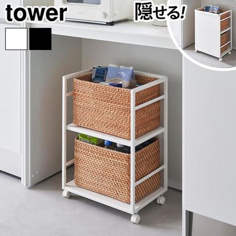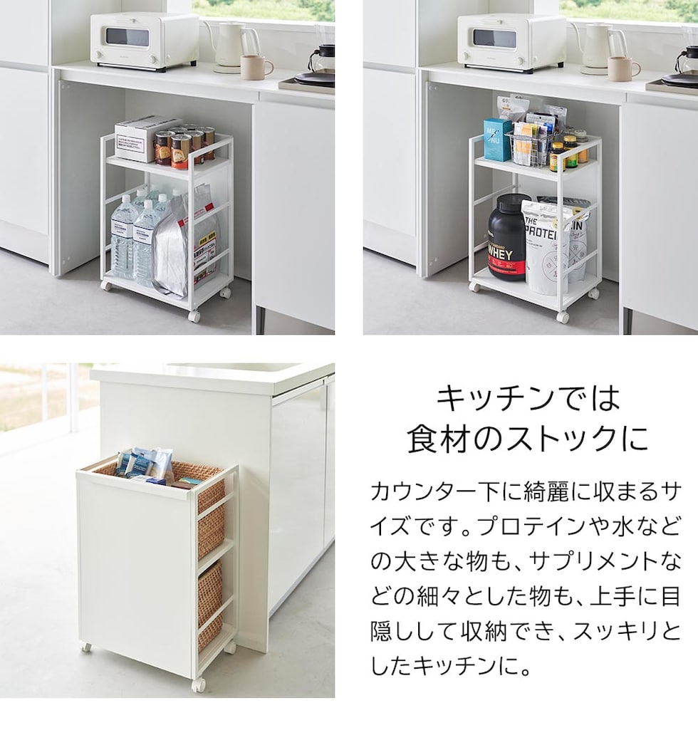 タワー 山崎実業 tower 目隠しワゴン ≪ホワイト 4810≫ キッチンワゴン キャスター付き 棚 収納ラック キッチン収納 ランドセル収納 可動棚 カウンター下 ストッカー ペット用品収納