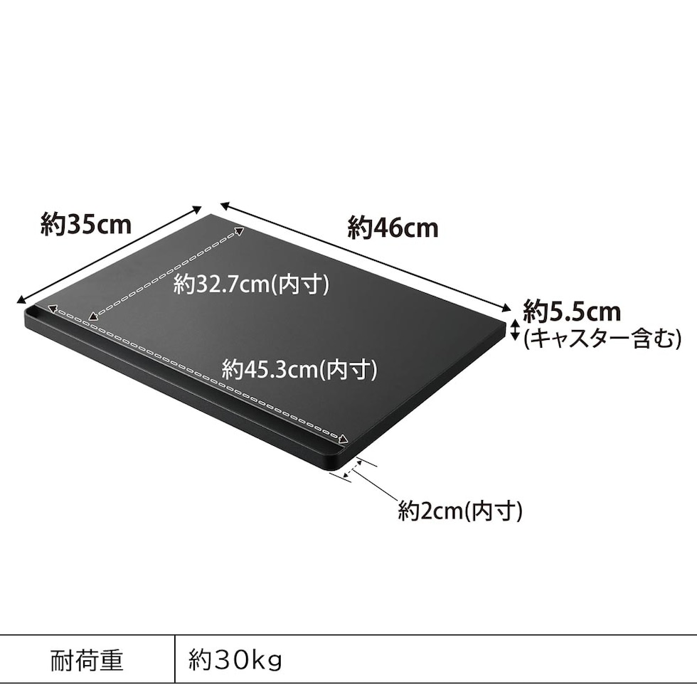 | 約30kg(静止耐荷重) ※約20kgを超えると移動の際にキャスターがスムーズに動かない場合がありますのでご注意ください。 |