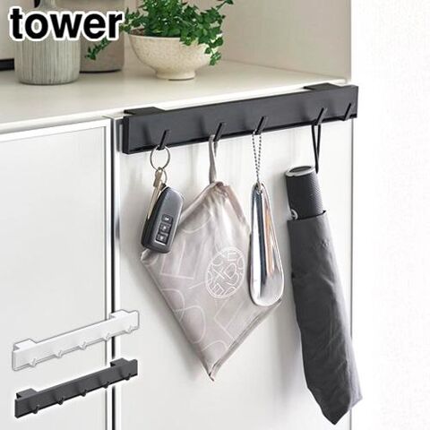 タワー 山崎実業 tower 引っ掛け可動式下駄箱扉フック ≪ブラック 2045≫ YAMAZAKI 靴箱扉 玄関小物 収納 引っ掛け収納 靴べら 折り畳み傘 レインコート キーフック カギ 鍵 省スペース コンパクト