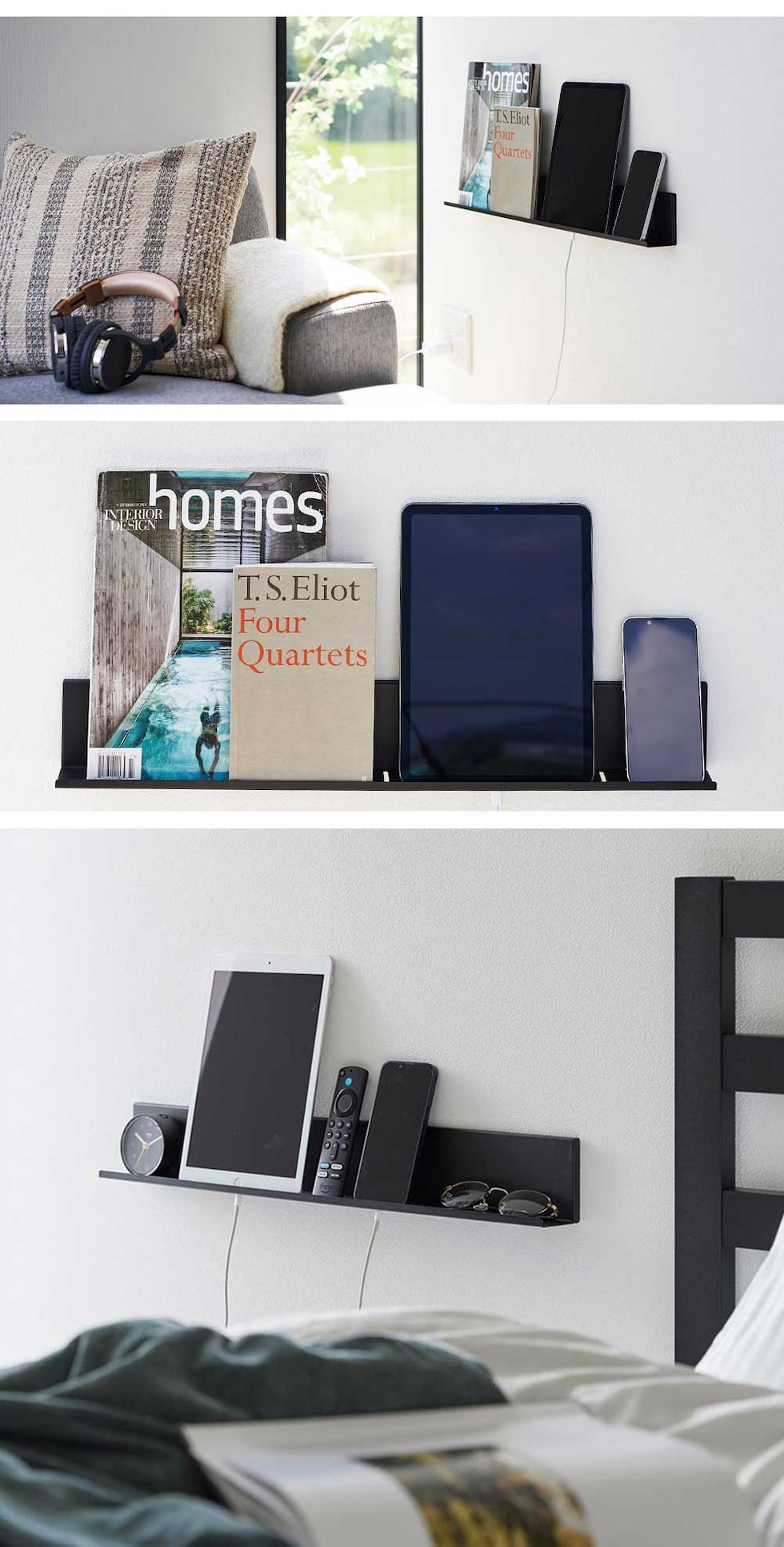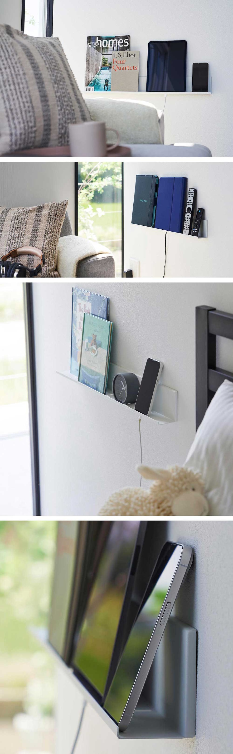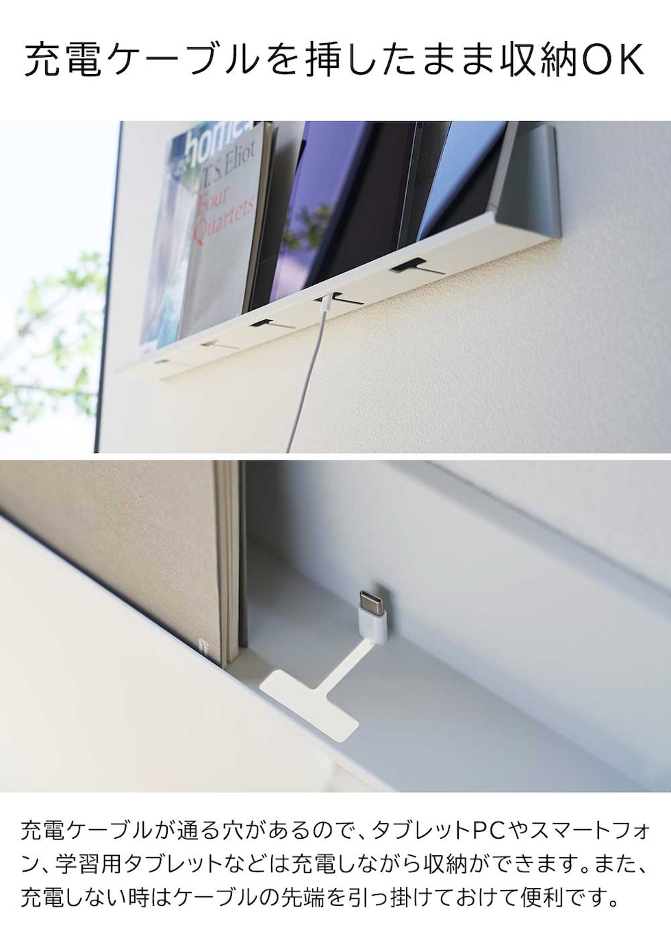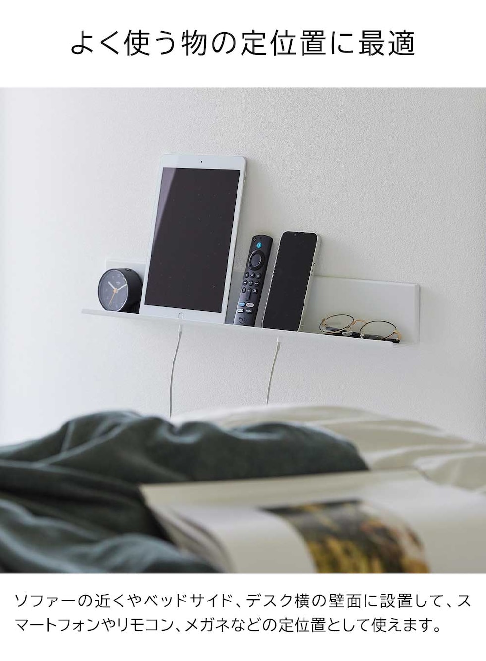 タワー 山崎実業 tower 石こうボード壁対応タブレット&ブック棚 ≪ホワイト 2196≫ YAMAZAKI ウォールラック 収納棚 浮かせる収納 壁面 見せる収納 ディスプレイ ケーブル穴 充電ケーブル 定位置 リビング 寝室 賃貸 DIY ギフト