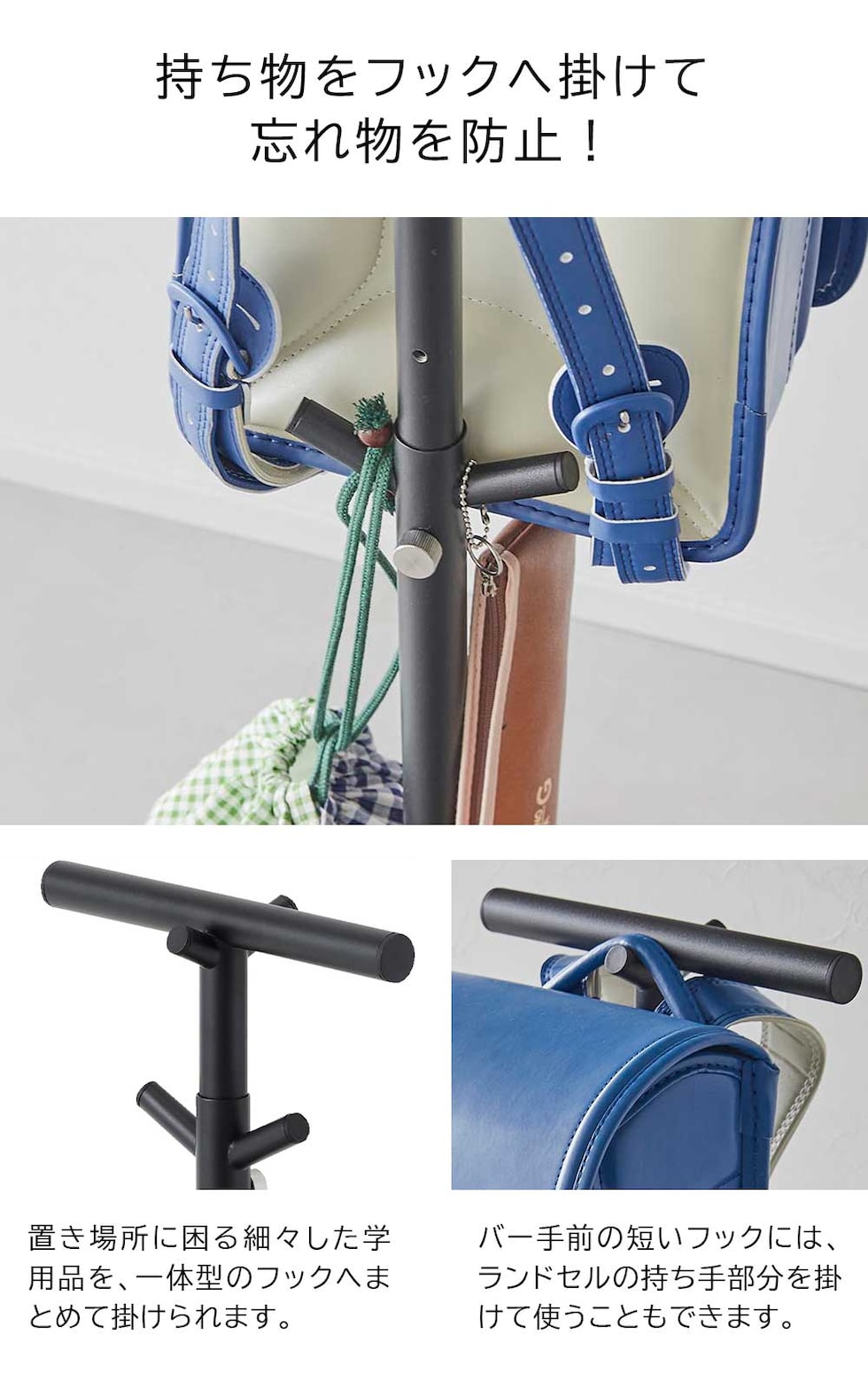 タワー 山崎実業 tower 伸縮ランドセルスタンド ≪ホワイト 4549≫ YAMAZAKI 高さ調節 4段階 コートハンガー ハンガーラック ハンガーポール 引っ掛け収納 フック ランドセル掛け リュック かばん 通勤バッグ 帽子 玄関 リビング 子供部屋