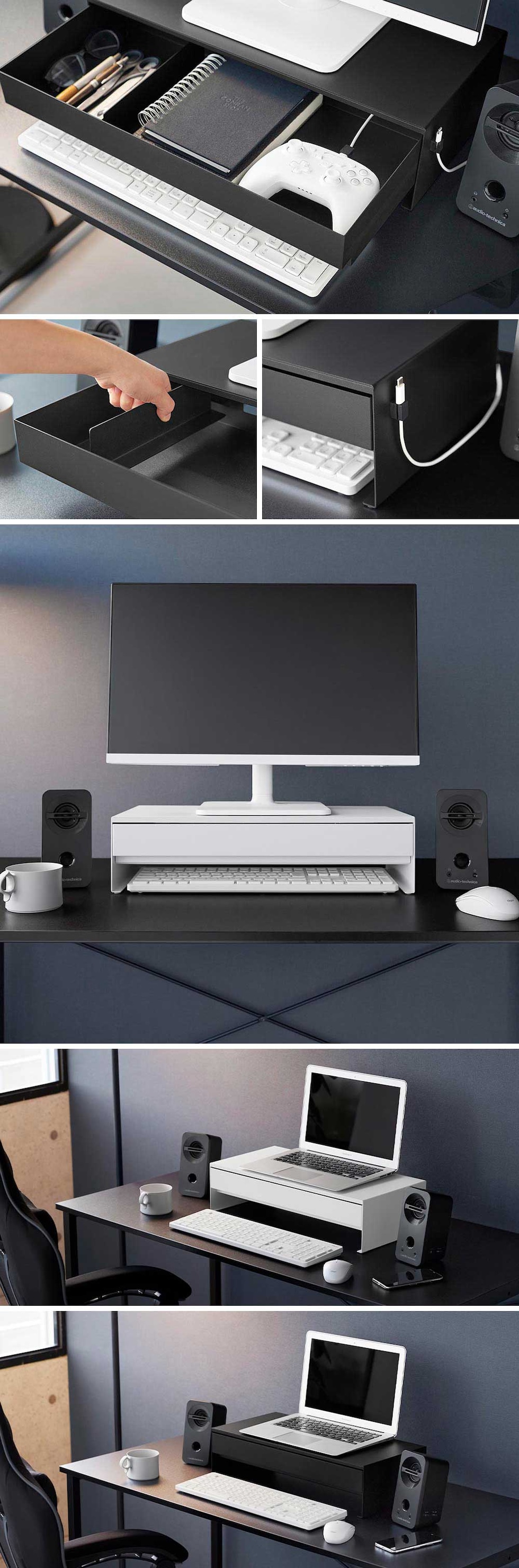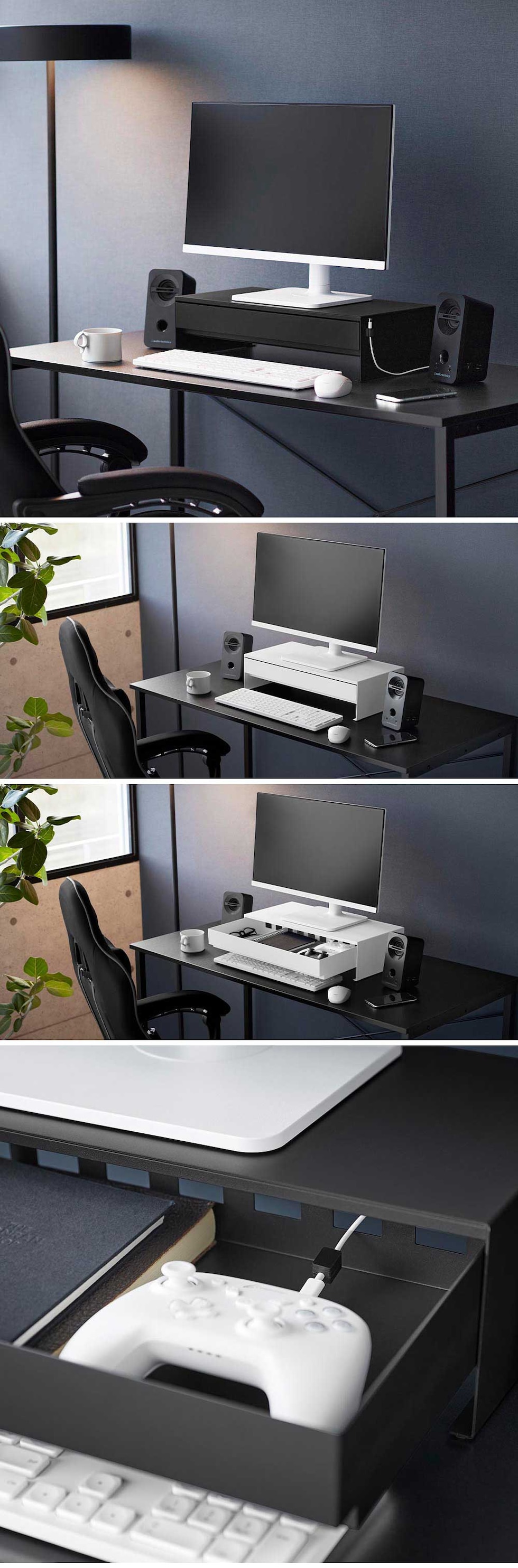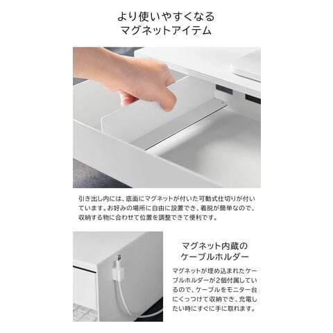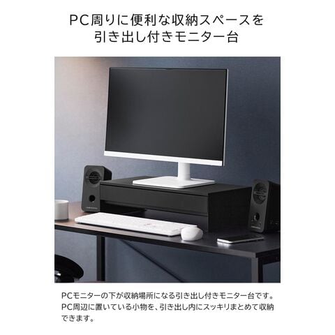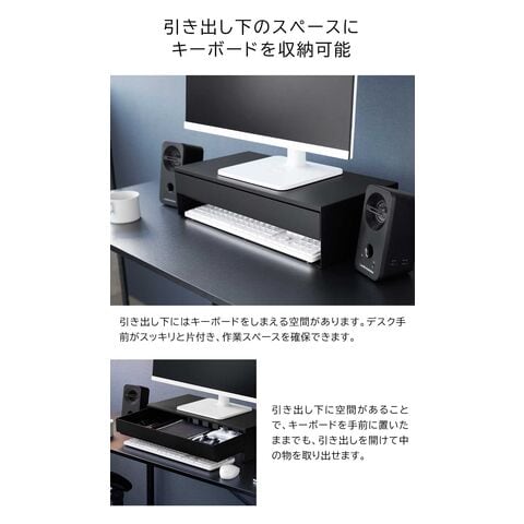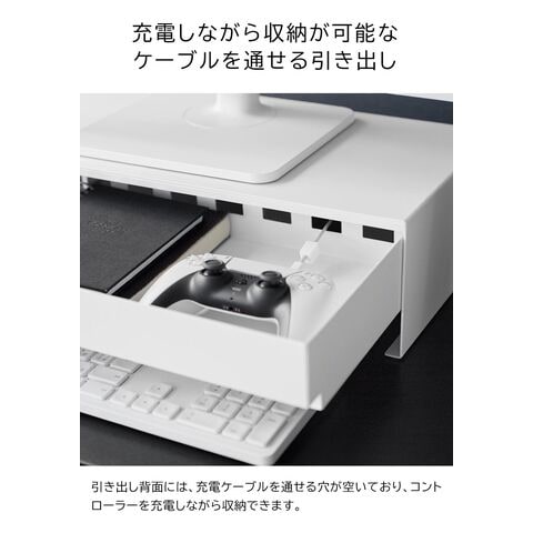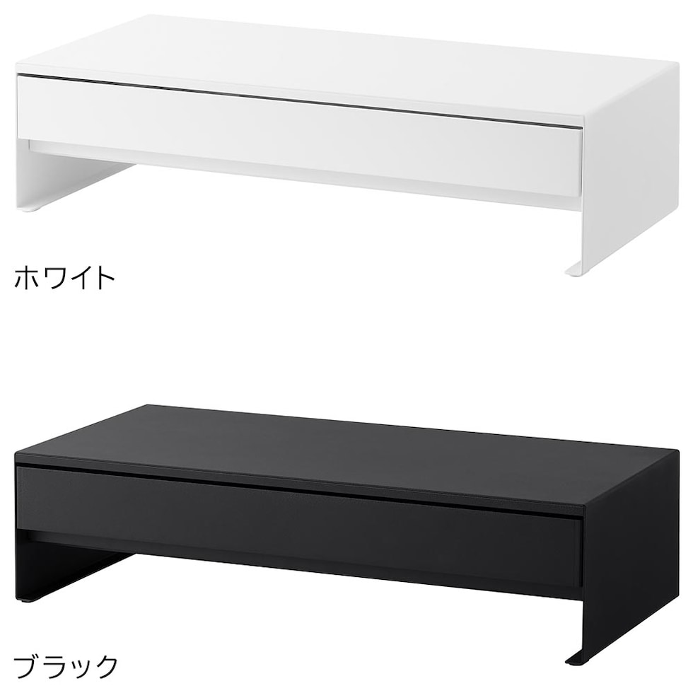 タワー 山崎実業 tower ゲームコントローラーも入る引き出し付きモニター台 ≪ホワイト 10187≫ YAMAZAKI 卓上ラック パソコン台 コンパクト 白 黒 机上ラック 幅50センチ 収納棚 大容量 キーボード 小物入れ 目隠し収納 ギフト