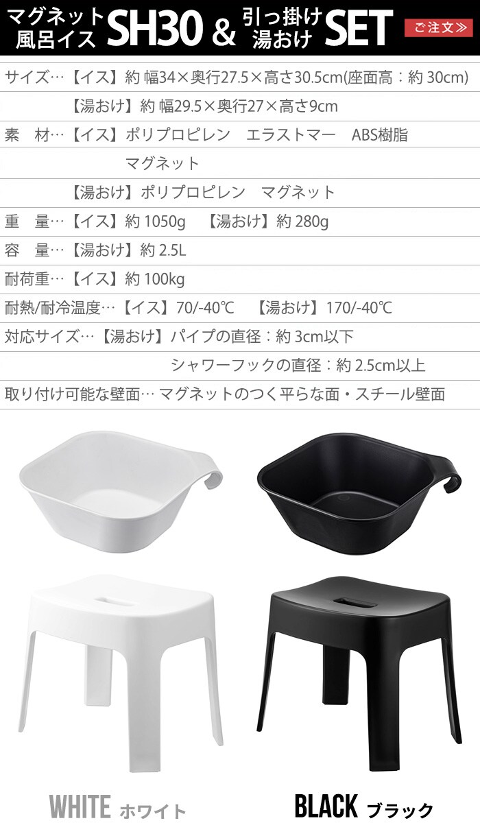 tower マグネット風呂イス&湯おけセット SH25《ブラック》 バスチェア 湯桶 おしゃれ お風呂 椅子 タワー 山崎実業 風呂椅子 風呂いす 風呂イス 桶 湯おけ オケ セット おしゃれ シンプル バスグッズ 風呂 黒 白 引っ掛け おすすめ 新生活
