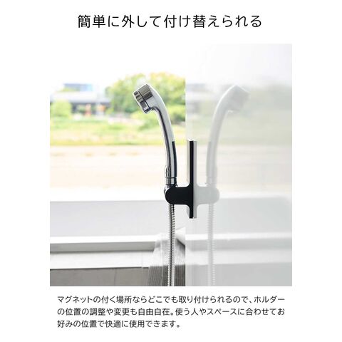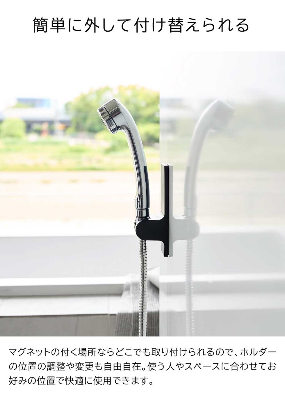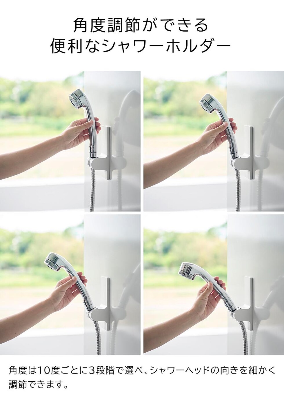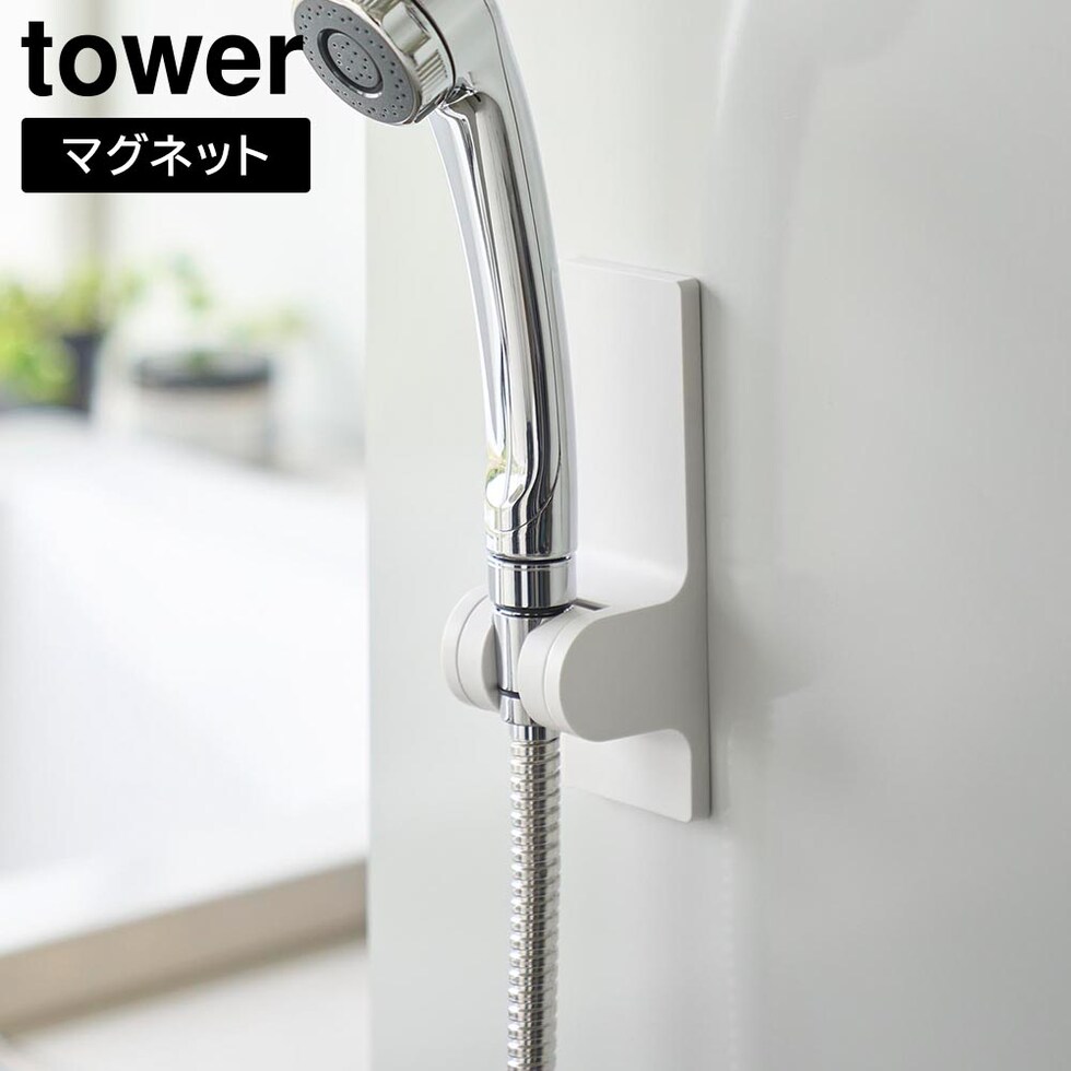 タワー 山崎実業 tower 角度が調節できるマグネットシャワーホルダー ≪ホワイト 10286≫ YAMAZAKI 磁石 簡単取り付け シャワーヘッドホルダー 3段階 角度調整 壁付け ストッパー付き シャワーフック