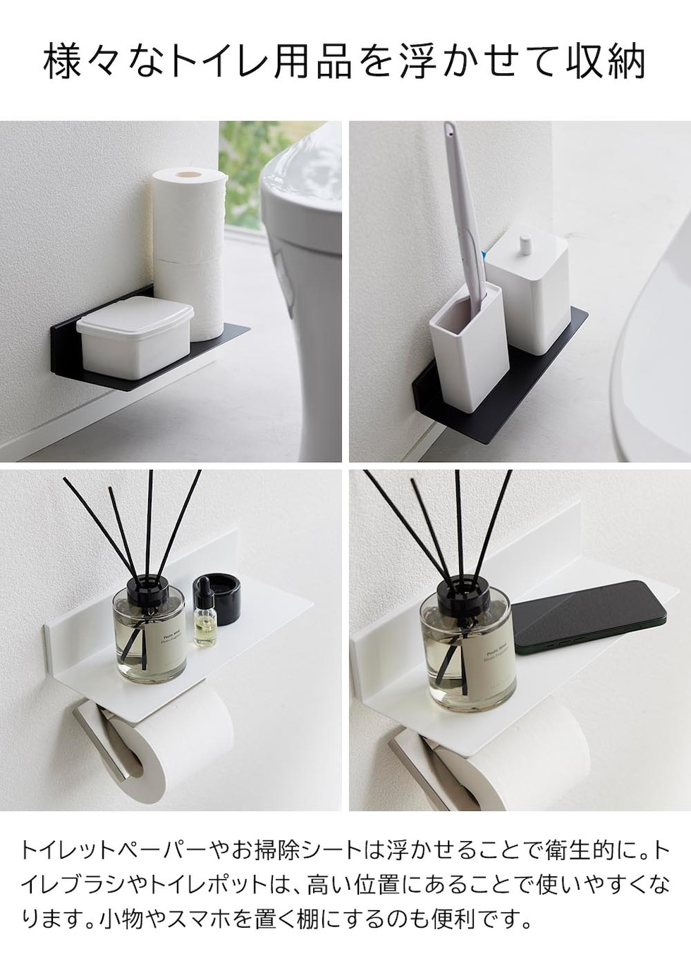 タワー 山崎実業 tower 石こうボード壁対応浮かせるトイレ棚 ≪ホワイト 2103≫ YAMAZAKI ウォールシェルフ 賃貸 取り付け 白 おしゃれ 飾り棚 壁面 隙間 収納ラック インテリア 見せる収納 一時置き 整理整頓