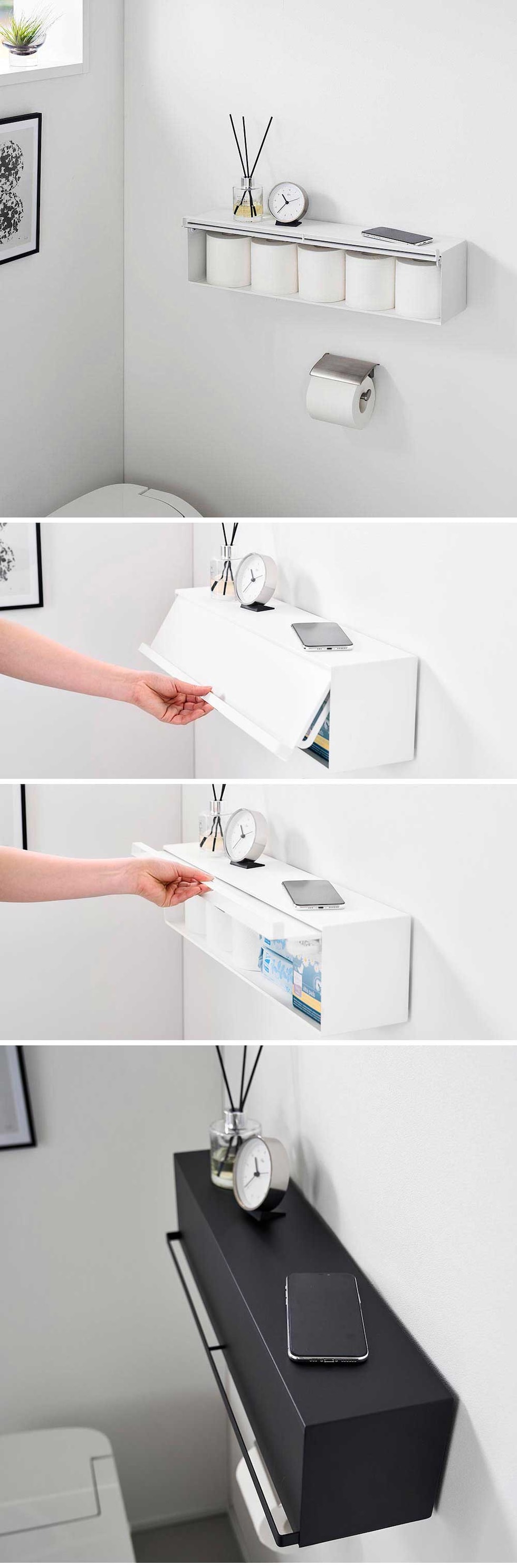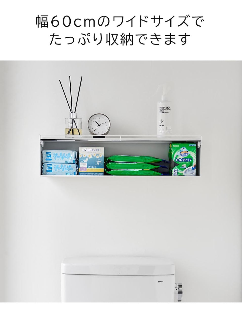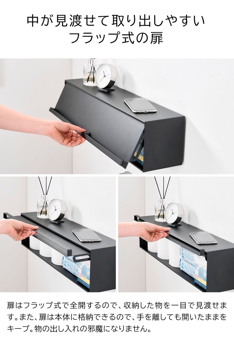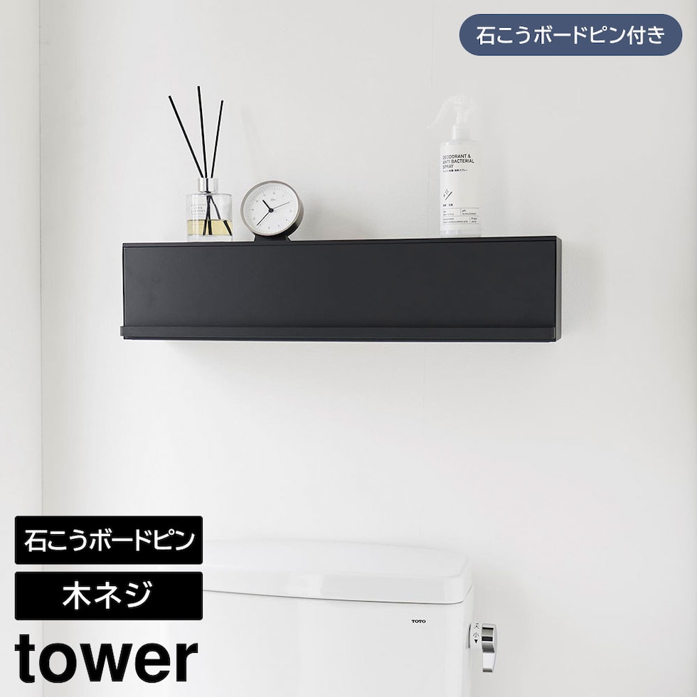 タワー 山崎実業 tower ウォール隠せるトイレ壁収納 石こうボード壁対応 ≪ホワイト 10068≫ YAMAZAKI 収納棚 ラック 簡単設置 トイレットペーパー 生理用品 クリーナー 詰め替え 小物収納 大容量 目隠し フラップ式 扉