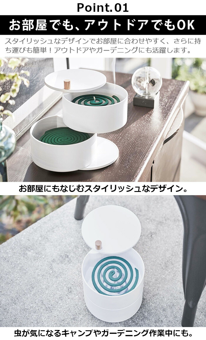 蚊取り線香入れ おしゃれ 蚊取り線香ホルダー タワー tower 収納トレー付き蚊遣り ≪ホワイト 05343≫ 2段 山崎実業 蚊取り線香 蚊取線香 蚊遣り 収納 蓋 屋外 フタ付き 蚊遣り器 蚊取り器 蚊やり 蓋付き 虫除け 虫対策 収納トレー シンプル YAMAZAKI
