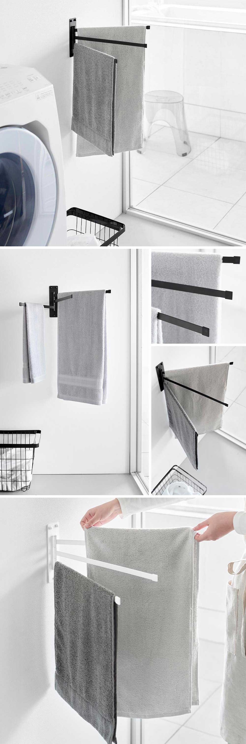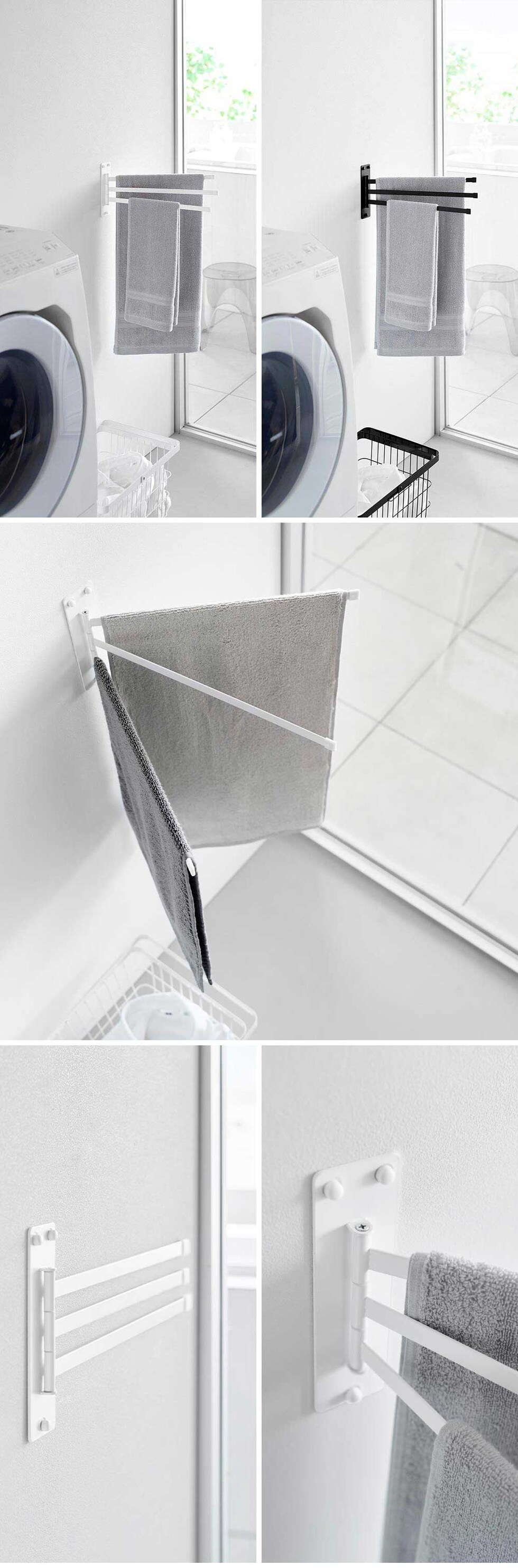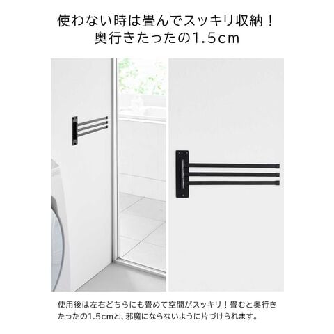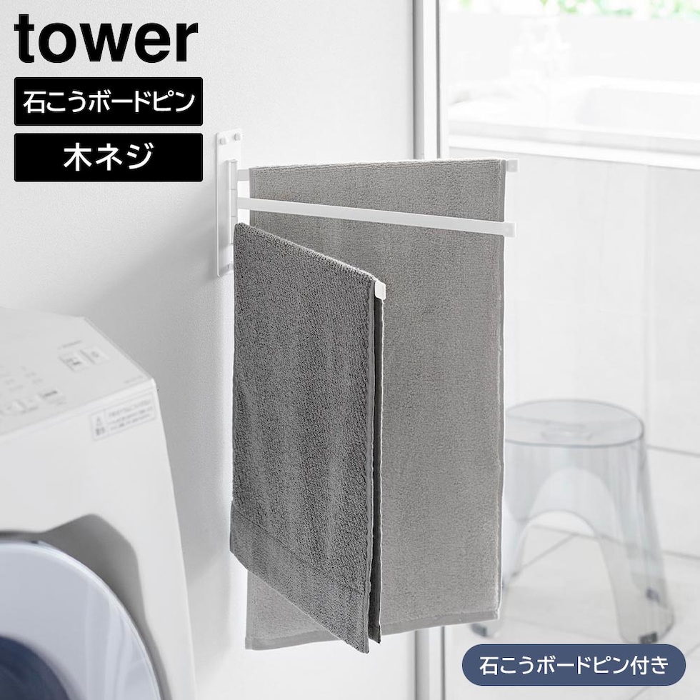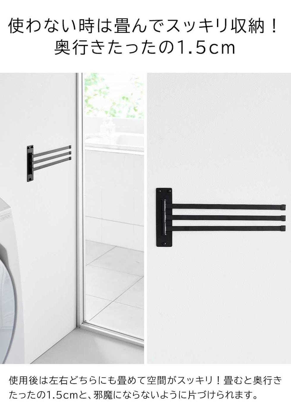 タワー 山崎実業 tower ウォールタオルハンガー 3連 石こうボード壁対応 ≪ブラック 10099≫ YAMAZAKI タオル掛け タオルバー 3枚 収納 スリム 省スペース 折り畳み 洗面所 脱衣所