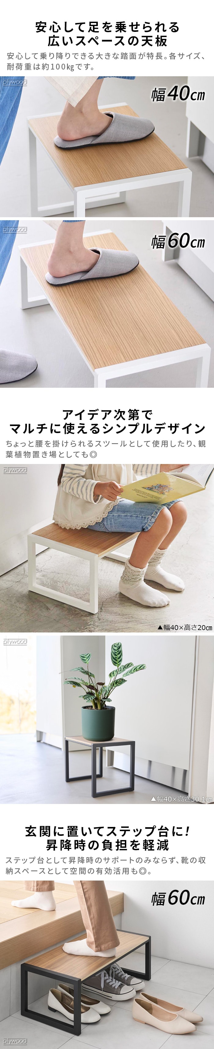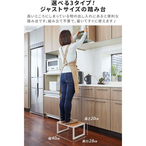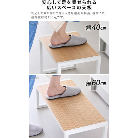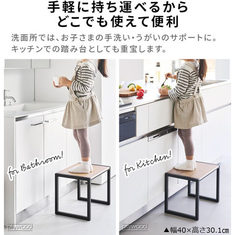 天板の木目がおしゃれ! 安定感のあるスチール製踏み台 木製天板がアクセントの、出しっぱなしでも様になるスタイリッシュな踏み台です。高いところにあるものを取る時はもちろん、お子さまが洗面台に届かない時のサポートなど、ちょっとした高さが欲しい時に重宝します。踏み台としてだけではなく、靴の脱ぎ履きをする時の腰掛けとしてもおすすめです。 |