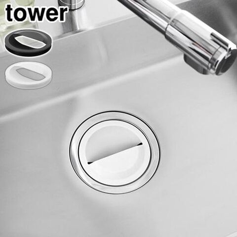 タワー 山崎実業 tower 水切りネットホルダー付き排水口カバー ≪ホワイト 1311≫ YAMAZAKI キッチンシンク 排水プレート 目隠し すっきり ゴミ受け 生ごみ 排水口掃除 抗菌加工 衛生的 台所 流し台 14.5cm対応 バスケットいらず
