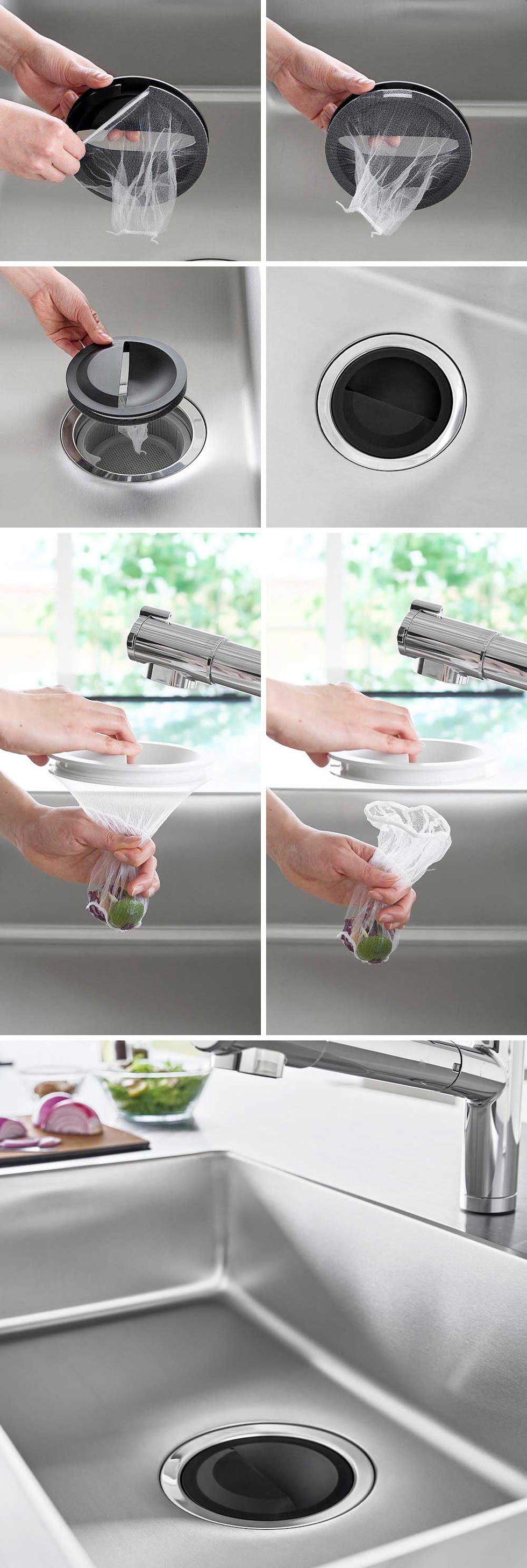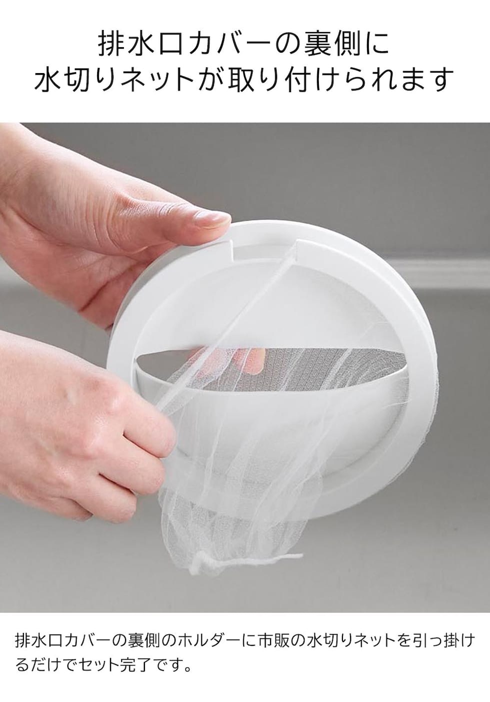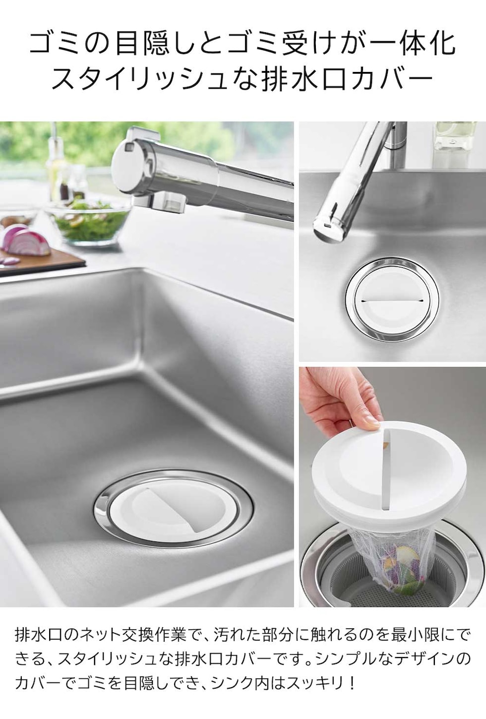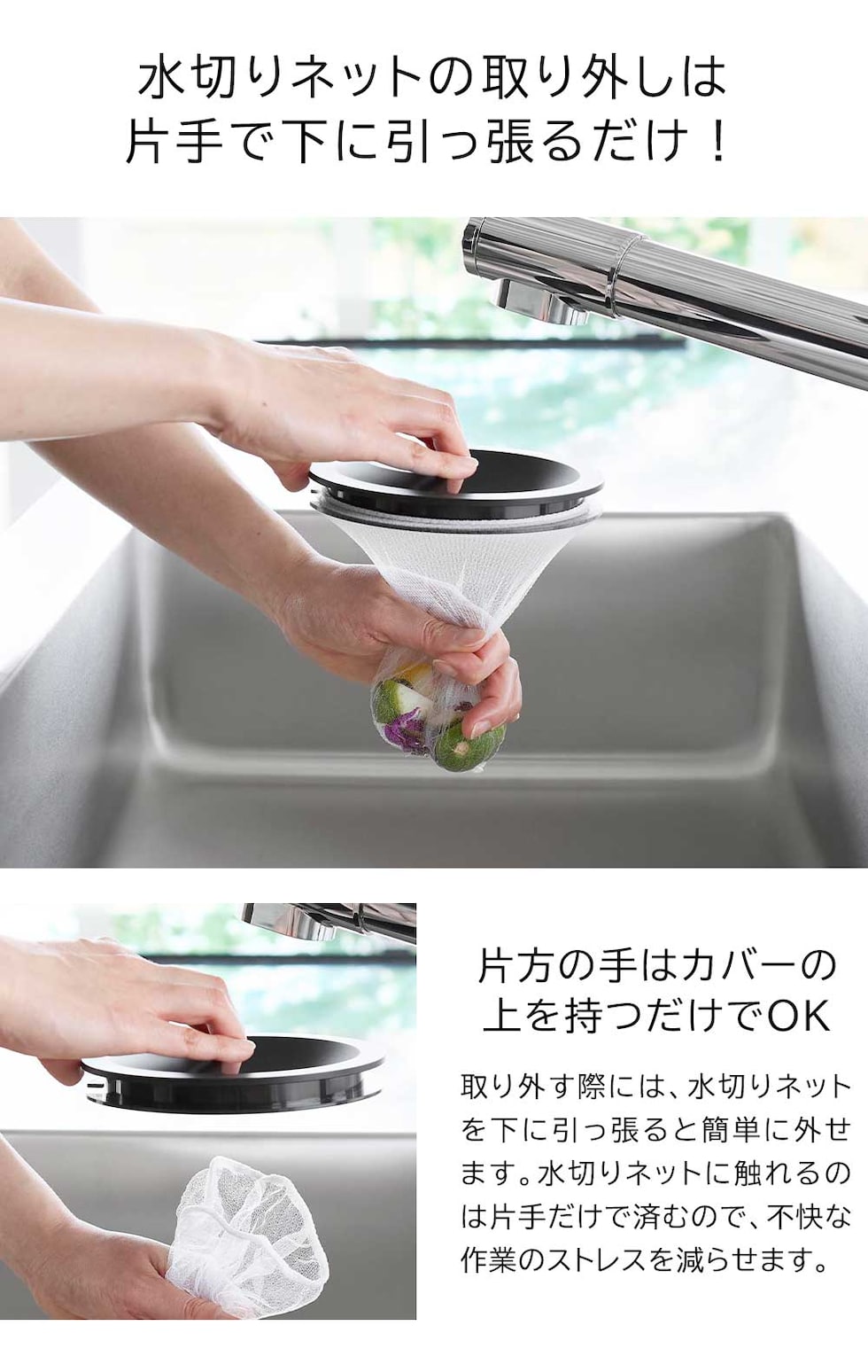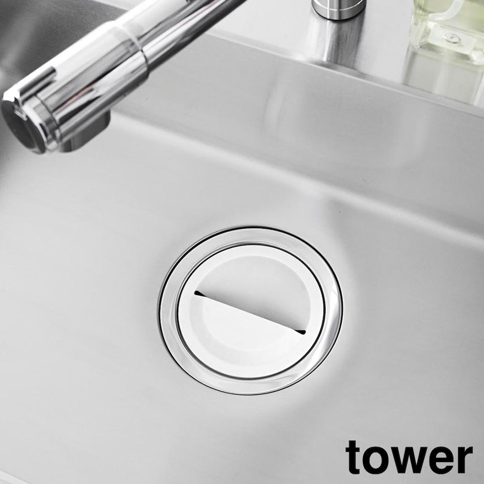 タワー 山崎実業 tower 水切りネットホルダー付き排水口カバー ≪ブラック 1312≫ YAMAZAKI キッチンシンク 排水プレート 目隠し すっきり ゴミ受け 生ごみ 排水口掃除 抗菌加工 衛生的 台所 流し台 14.5cm対応 バスケットいらず