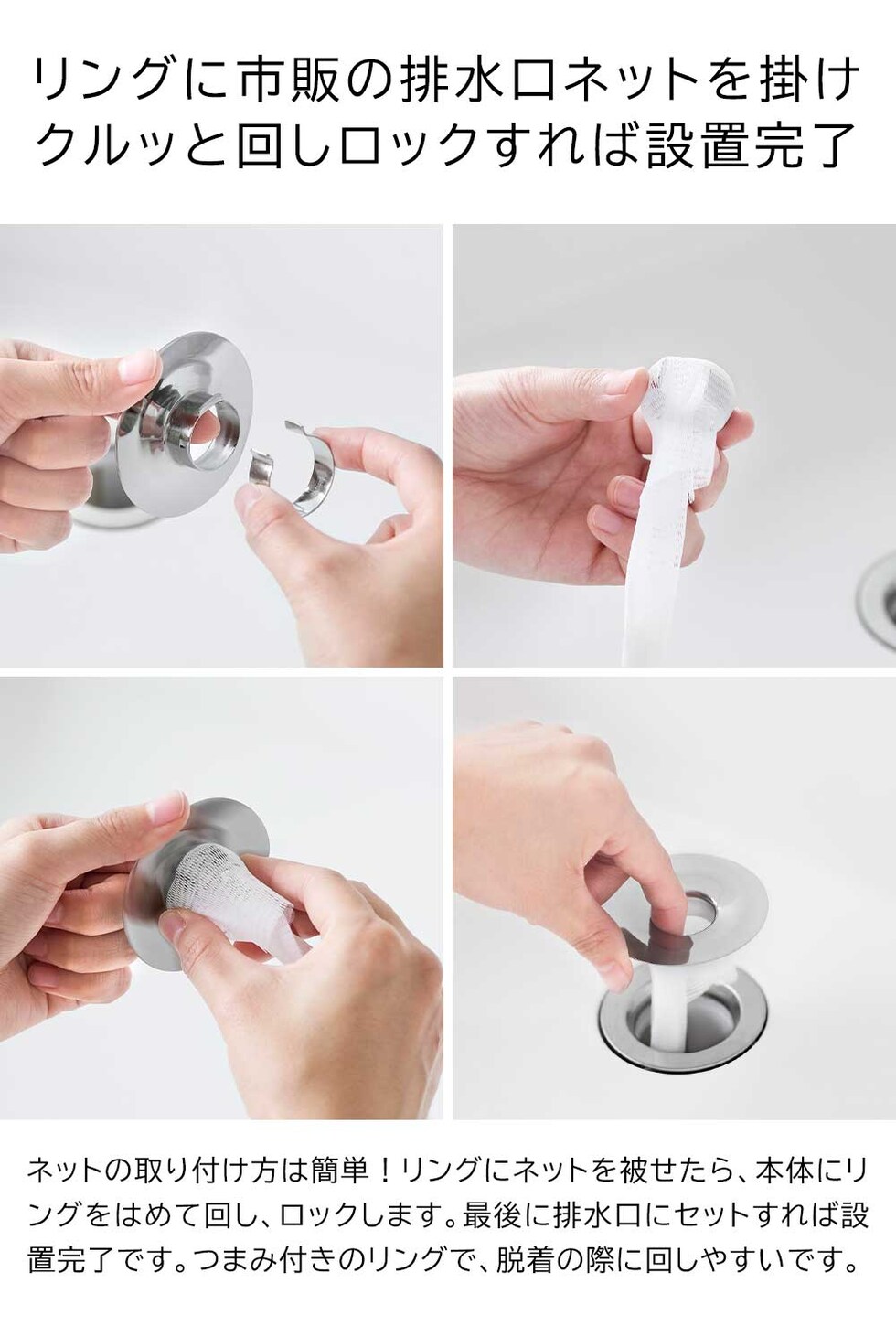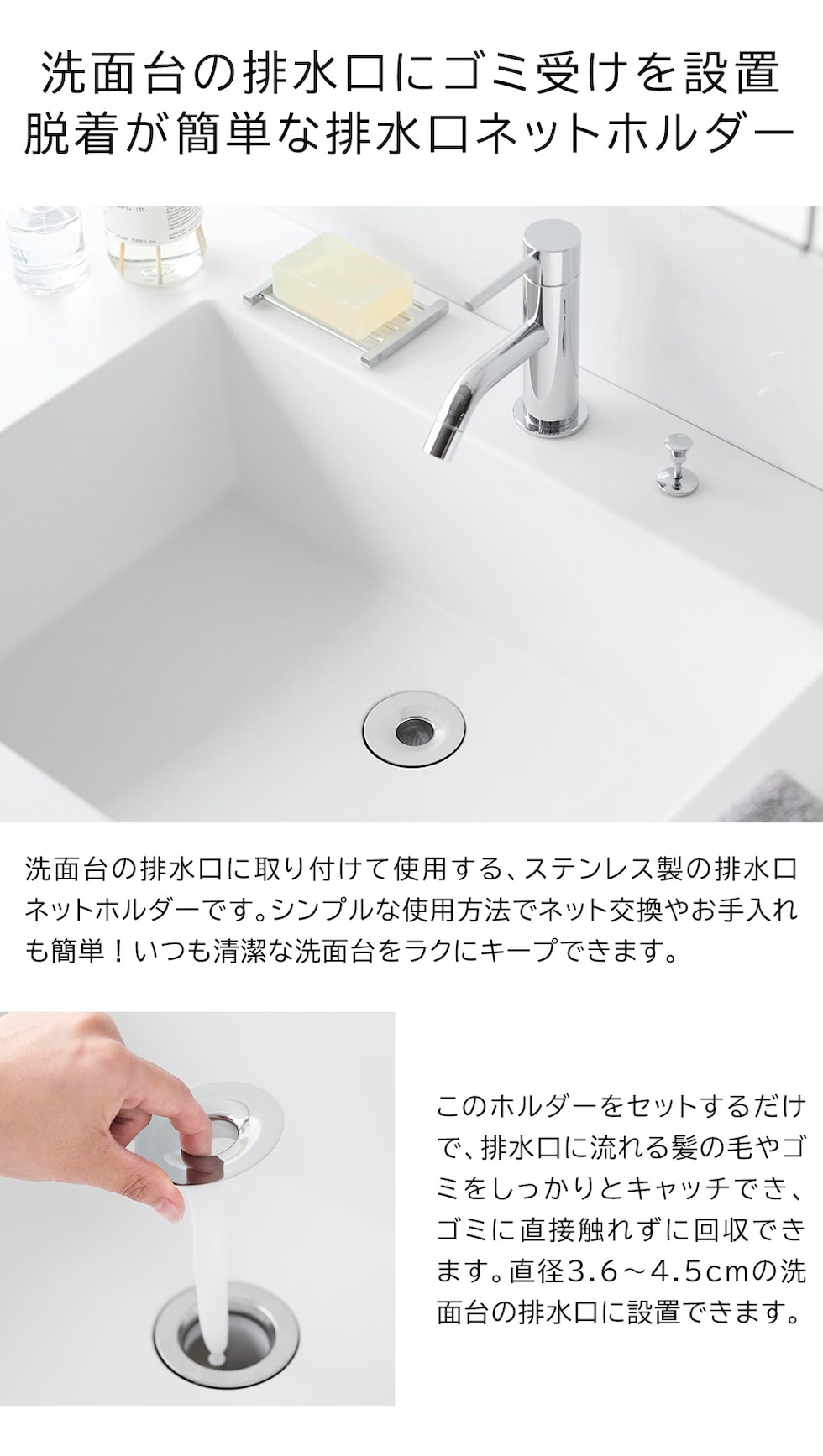 タワー 山崎実業 tower 洗面排水口ゴミ受けネットホルダー ≪シルバー 1681≫ YAMAZAKI ステンレス ヘアキャッチャー 髪の毛 ごみ受け 排水溝 掃除 シンク 洗面台 シンプル 洗いやすい