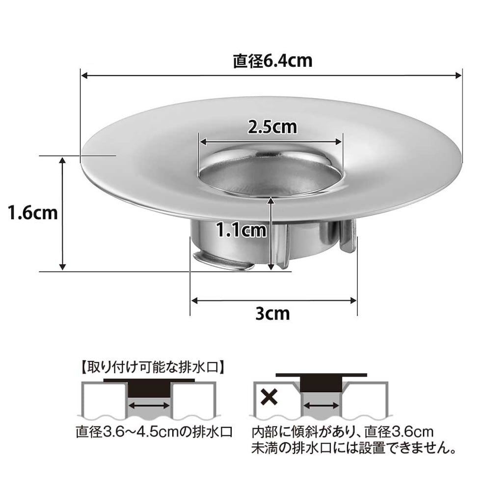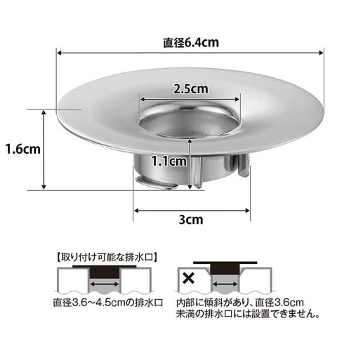 | 取り付け可能な排水口:直径3.6~4.5cmの洗面台の排水口 |