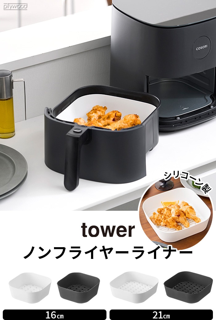 タワー 山崎実業 tower ノンフライヤーライナー 16cm ≪ホワイト 10159≫ YAMAZAKI エアフライヤー シリコンライナー ヘルシー 耐熱 内鍋保護 シリコンポット 揚げ物 電子レンジ対応 調理 下ごしらえ 焦げ付き防止 お手入れ簡単