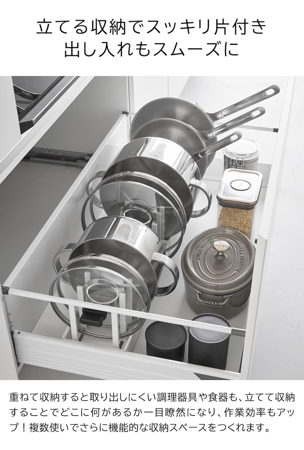 タワー 山崎実業 tower シンク下幅調節鍋蓋&フライパン収納スタンド W40 ≪ブラック 1362≫ YAMAZAKI ラック キッチン 台所下収納 デッドスペース 有効活用 調節可能 可動仕切りバー ギフト
