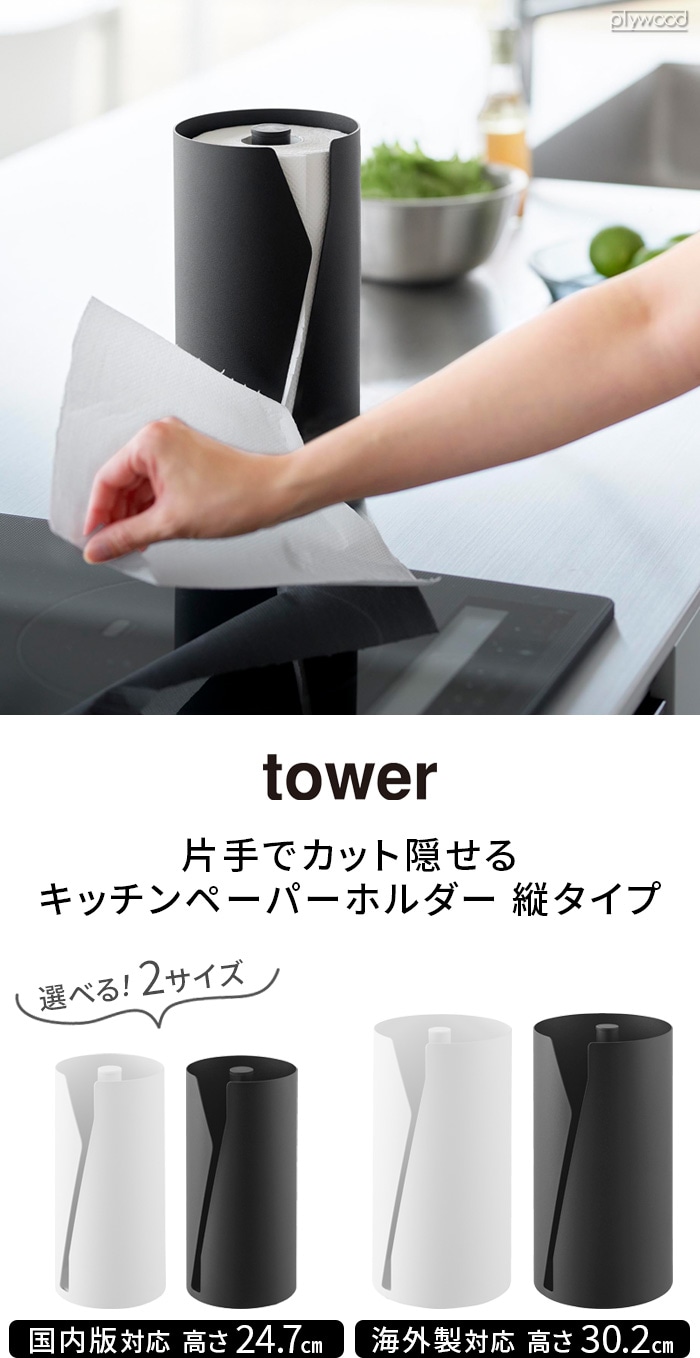 タワー 山崎実業 tower 片手でカット隠せるキッチンペーパーホルダー 縦タイプ [Lサイズ] ≪ホワイト 10041≫ YAMAZAKI ペーパータオル 片手で切れる 省スペース 大判 海外製 コストコ 対応 置き型タイプ 衛生的 重み 隠す収納 ギフト