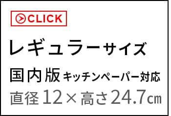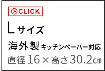 | ≪レギュラーサイズ≫ 直径11×幅23cm以内のキッチンペーパーロール ※キッチンペーパーロールのサイズや形状によっては収納できない物もあります。 ≪Lサイズ≫ 直径15×幅28cm以内のキッチンペーパーロール 海外製の大判タイプを収納可能 ※キッチンペーパーロールのサイズや形状によっては収納できない物もあります。 |