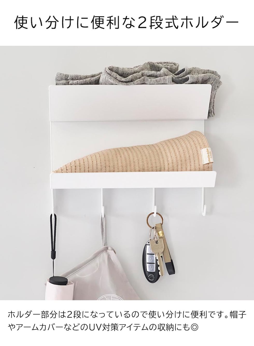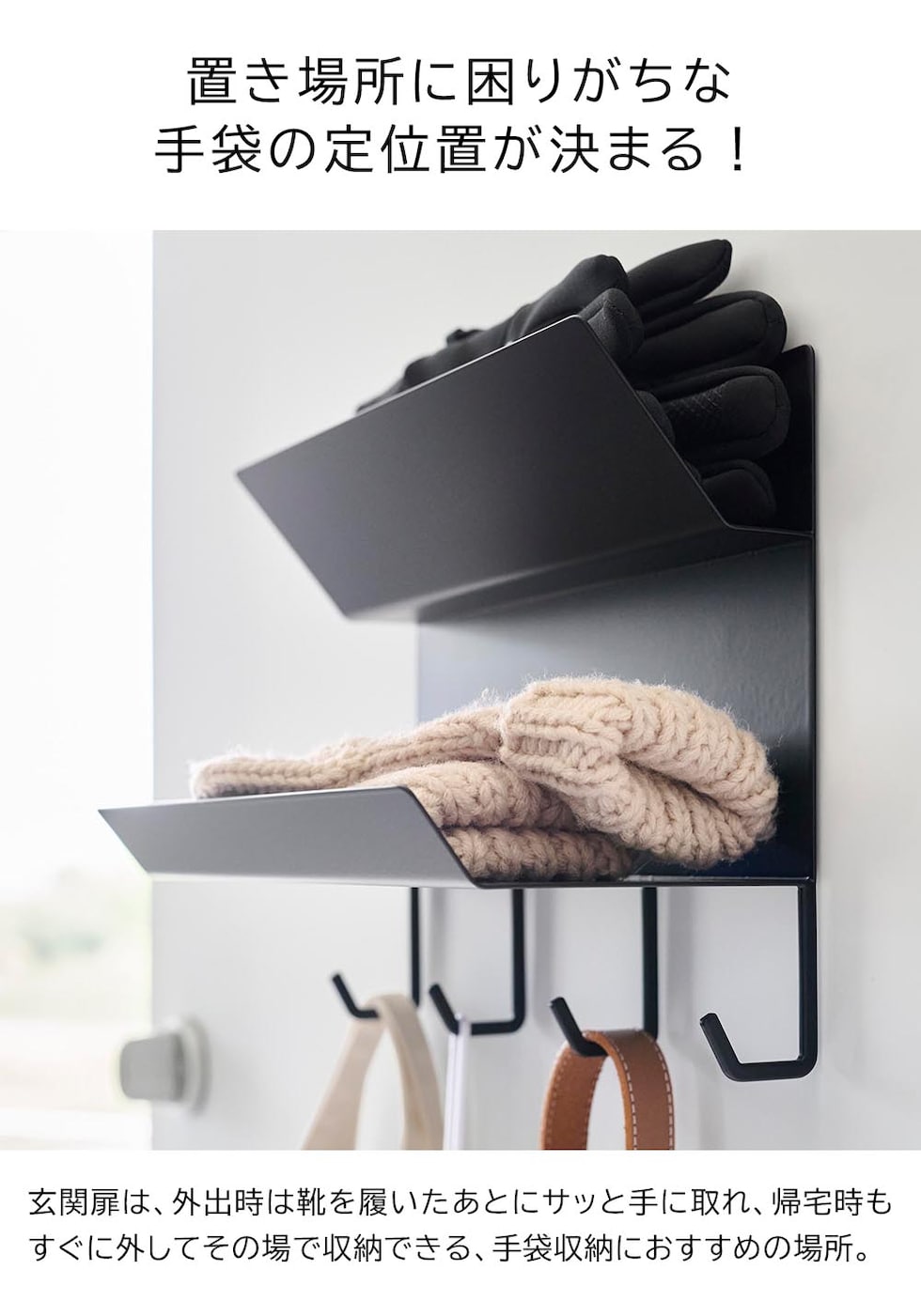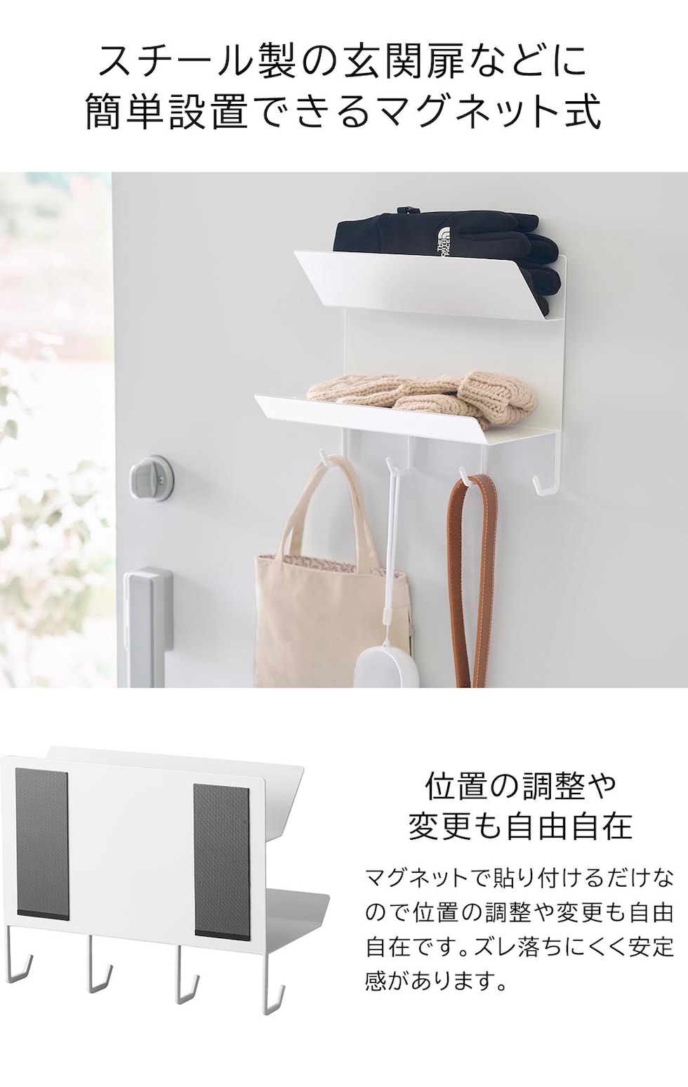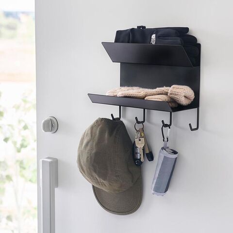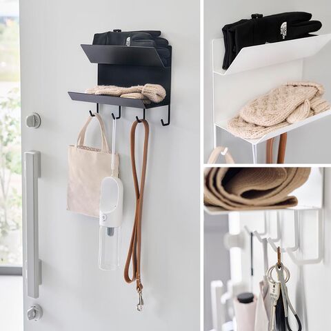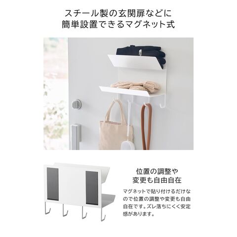 タワー 山崎実業 tower フック付きマグネット手袋ホルダー ≪ホワイト 1971≫ YAMAZAKI ウォールラック ウォールシェルフ 2段 収納棚 玄関 磁石 浮かせる収納 壁面収納 見せる収納 定位置 ギフト プレゼント
