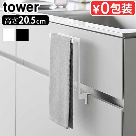 タワー 山崎実業 tower キッチンシンク下収納扉タオルハンガー ≪ホワイト 1985≫ YAMAZAKI おしゃれ シンプル タオル掛け タオルホルダー タオルバー ふきん掛け 洗面所 シンク扉 小物フック付き ギフト プレゼント