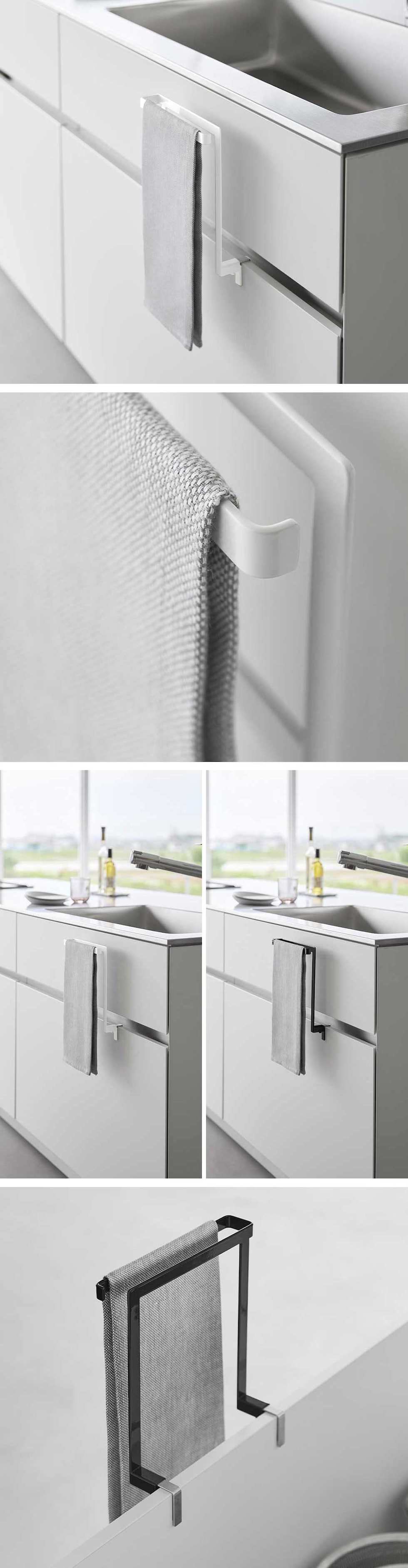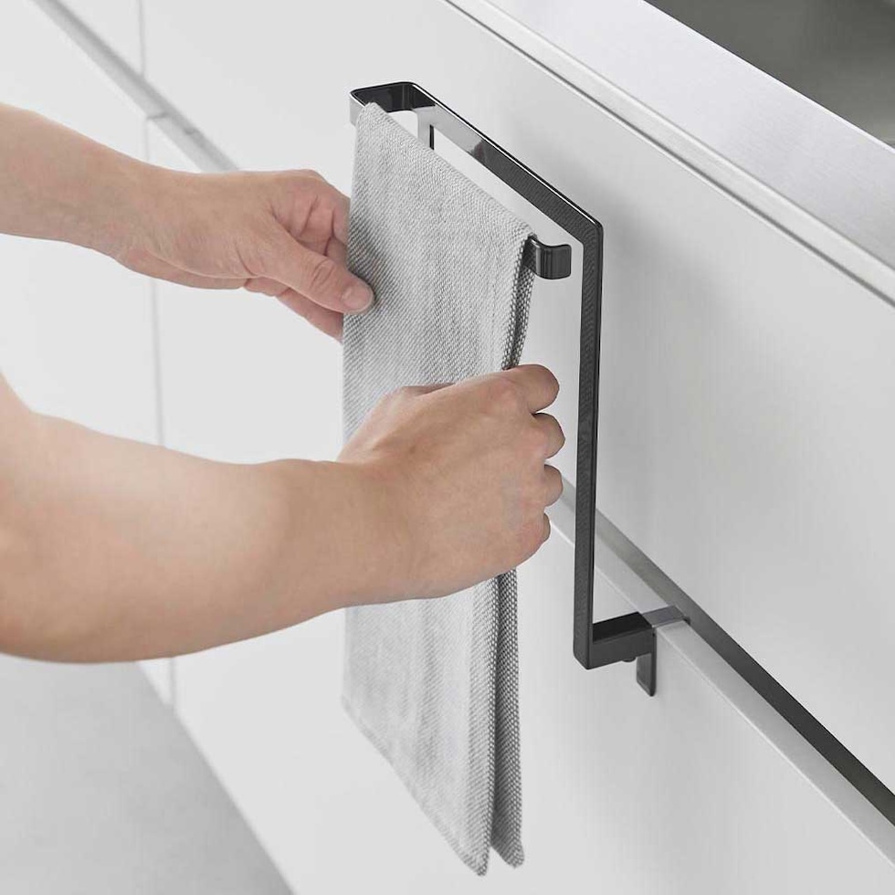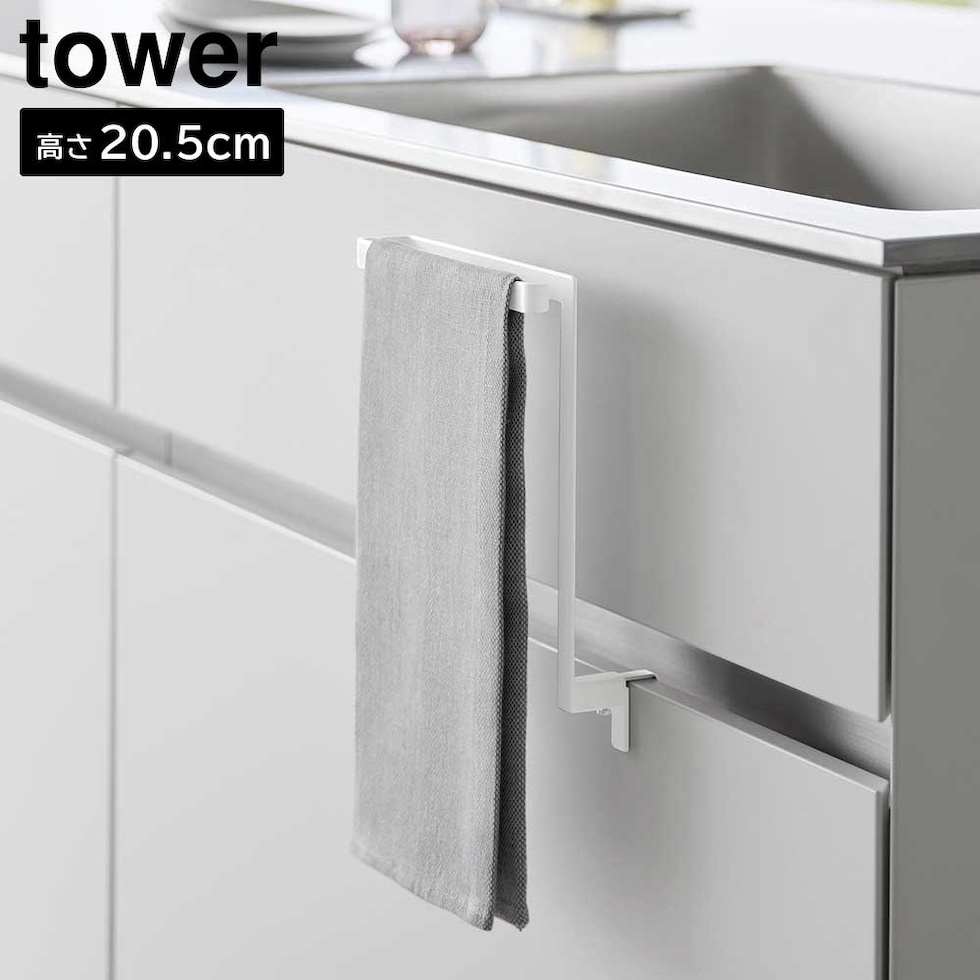 タワー 山崎実業 tower キッチンシンク下収納扉タオルハンガー ≪ブラック 1986≫ YAMAZAKI おしゃれ シンプル タオル掛け タオルホルダー タオルバー ふきん掛け 洗面所 シンク扉 小物フック付き ギフト プレゼント