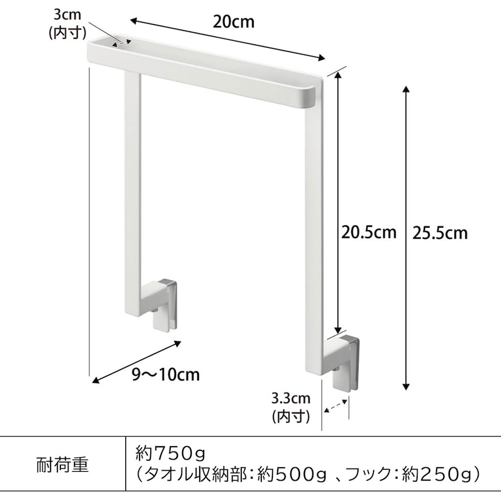 | (約)幅20×奥行9-10×高さ25.5cm タオル収納部:(約)幅19.5×奥行3cm 設置時のタオル収納部の高さ:約20.5cm |