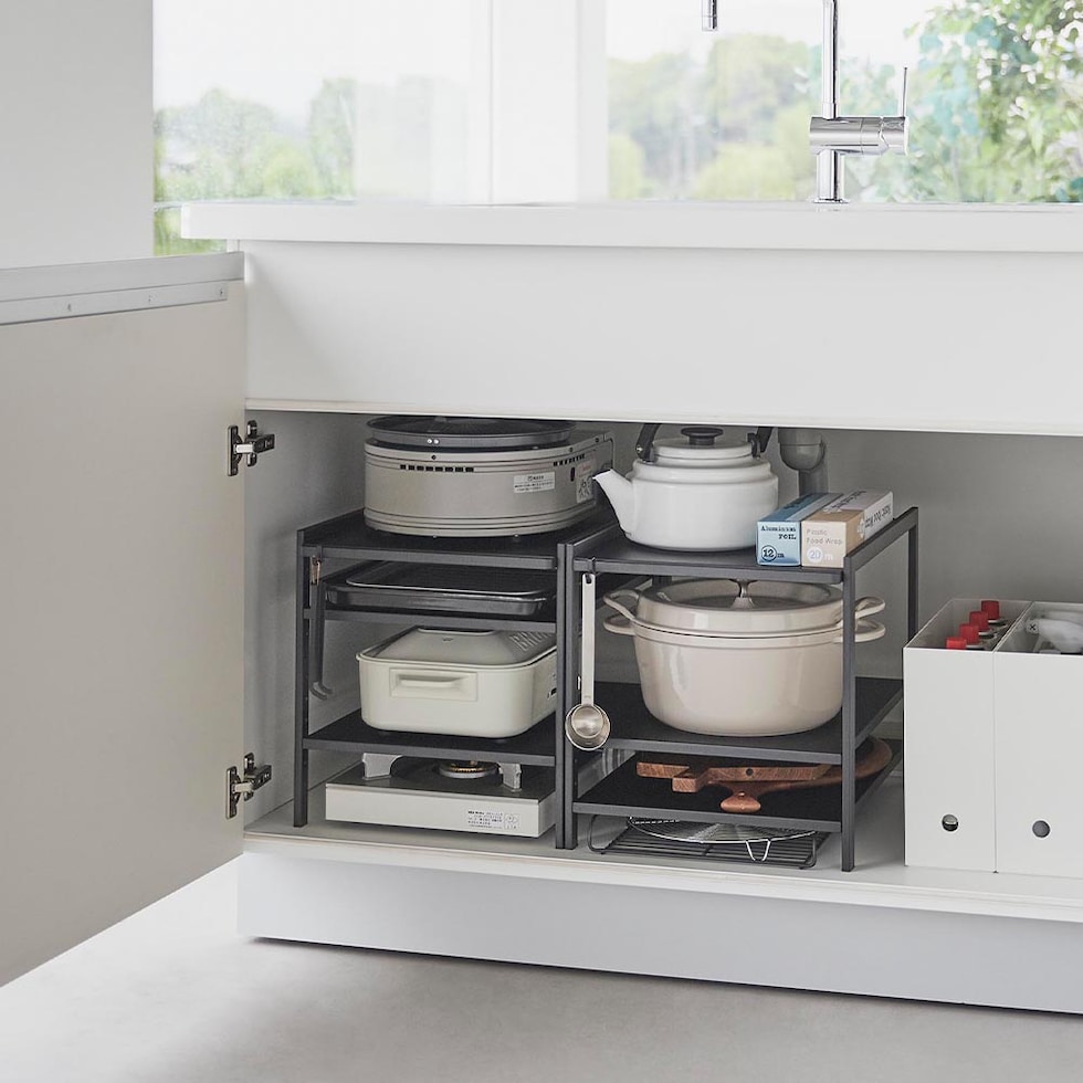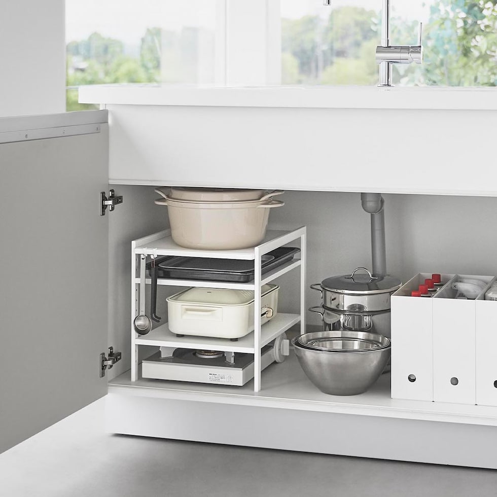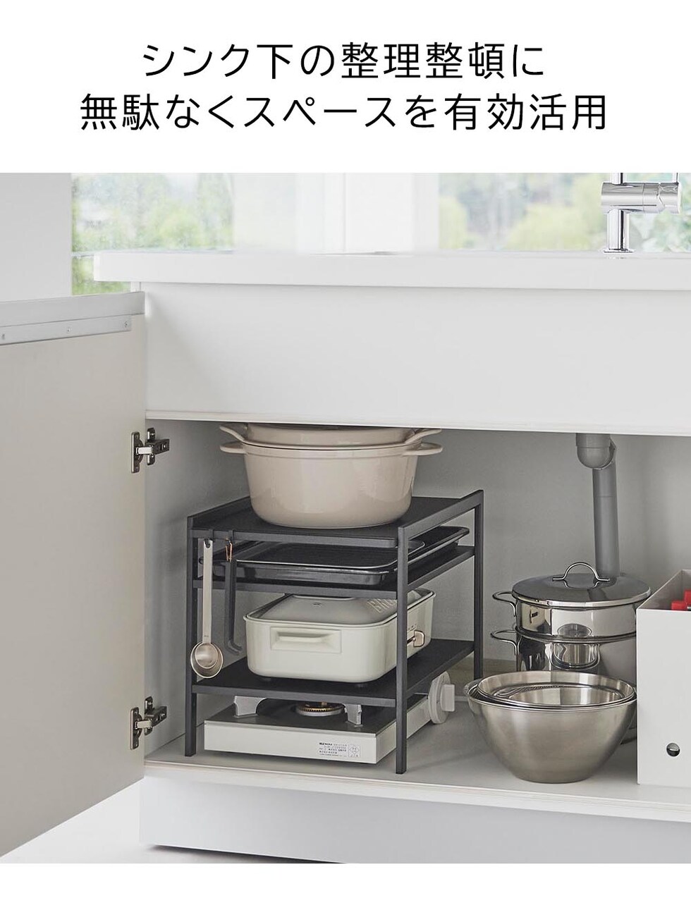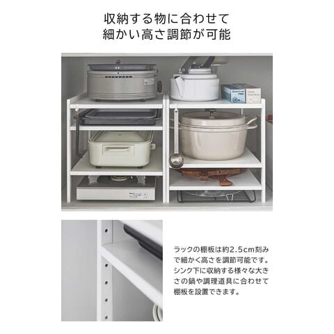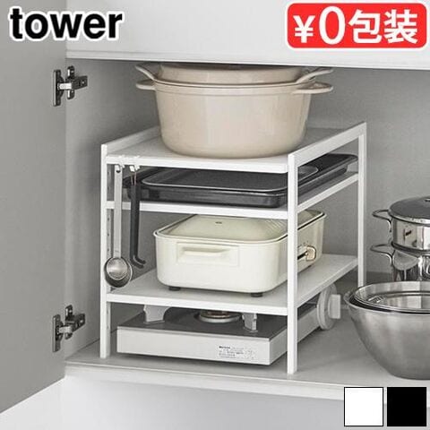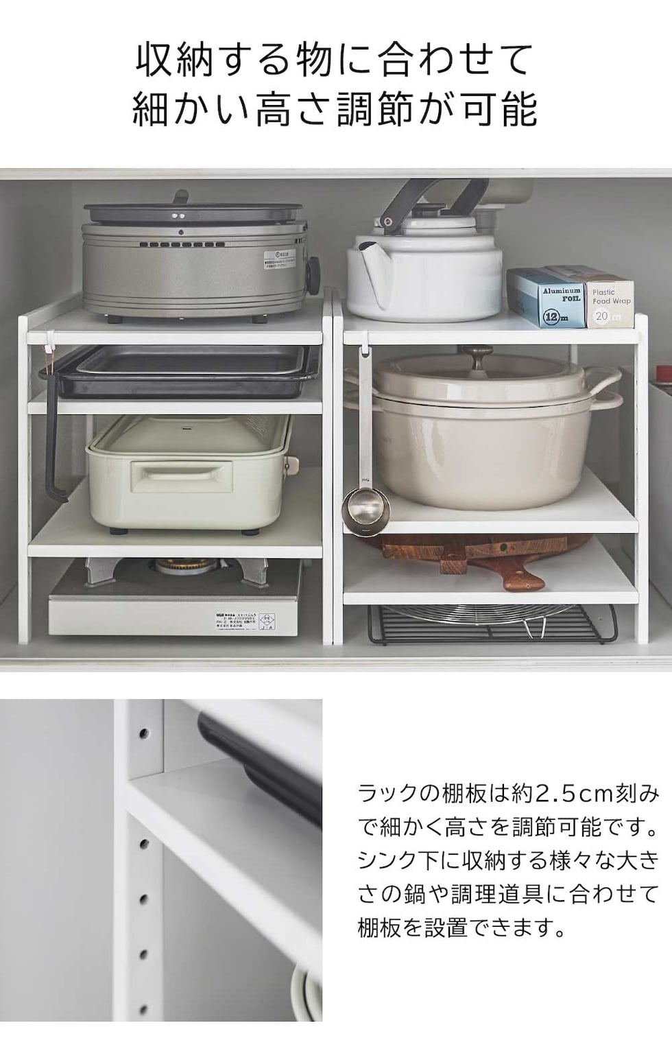 タワー 山崎実業 tower 高さ調節シンク下ラック 3段 ≪ホワイト 2011≫ 台所ラック 収納ラック 隙間 キッチン下収納 シンプル 鍋 流しの下 洗面台下 棚 洗面下収納