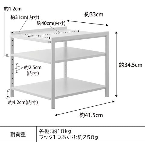| (約)幅33×奥行41.5×高さ34.5cm 内寸(ハンドル付き棚板・棚板):(約)幅31×奥行40cm |