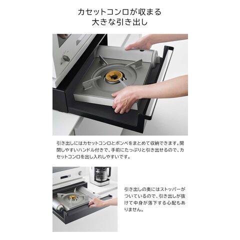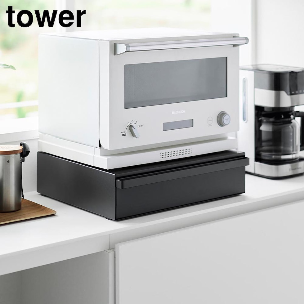 タワー 山崎実業 tower カセットコンロが入る家電下ラック 1段 ≪ブラック 10198≫ YAMAZAKI キッチンラック 電子レンジ置き トースター オーブン 台 引き出し 卓上IHコンロ カセットボンベ 収納のレビュー