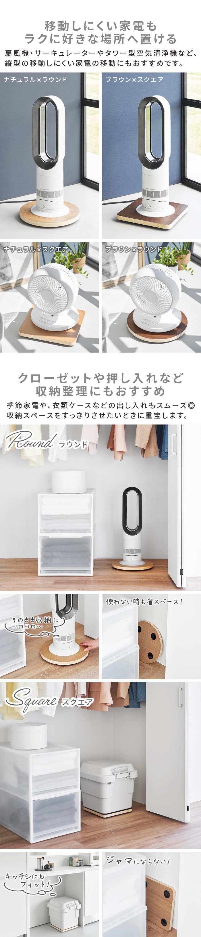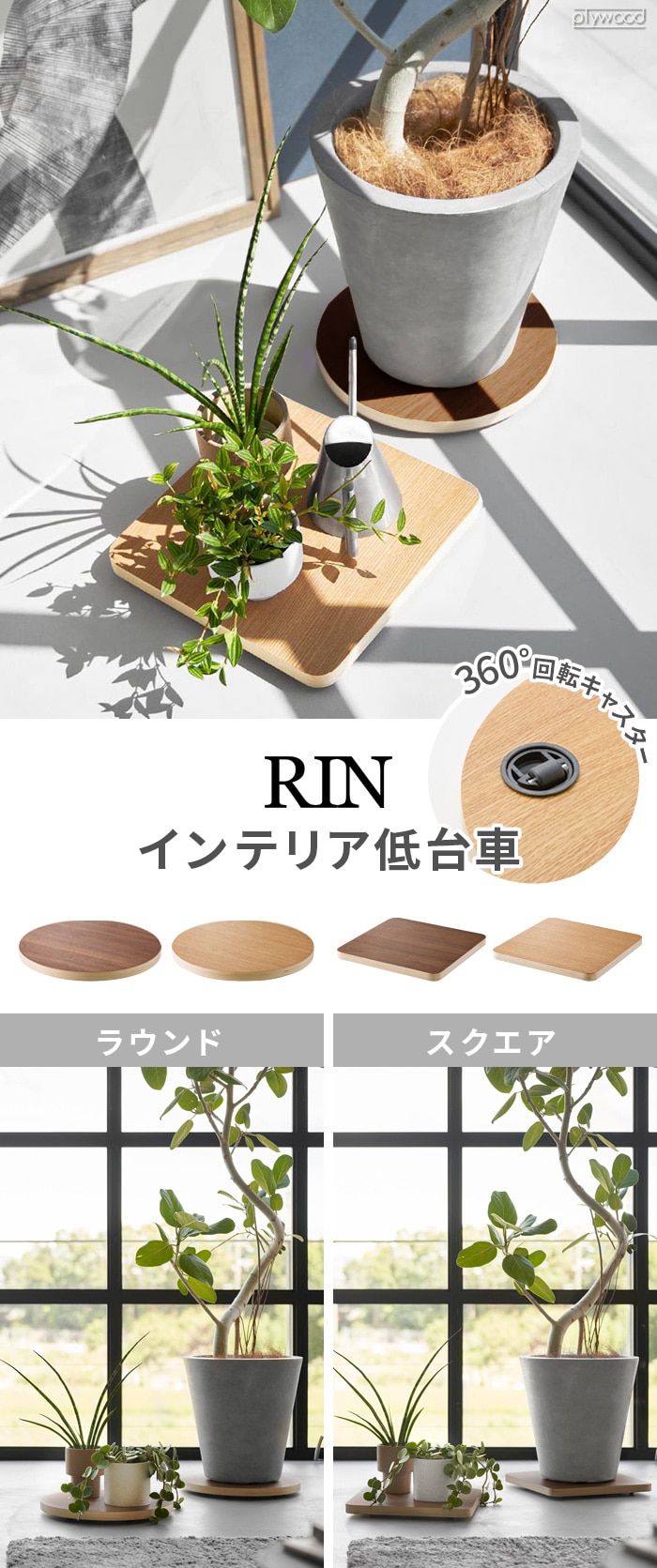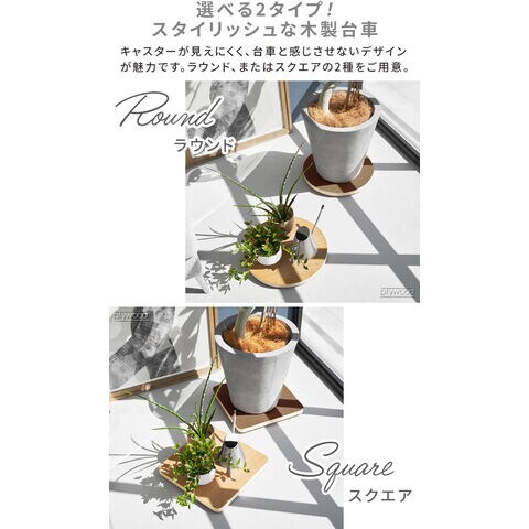 山崎実業 リン RIN インテリア低台車 ≪スクエア/ブラウン 10064≫ YAMAZAKI 木製 円形 丸型 プランター 植物 植木鉢 台 加湿器 サーキュレーター 除湿器 扇風機 移動 キャスター 360度回転 コンパクト ギフト
