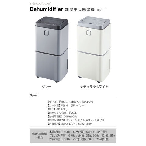 レコルト 部屋干し除湿機 recolte Dehumidifier《ナチュラルホワイト RDH-1》除湿機 コンプレッサー コンプレッサー式 除湿器 部屋干し コンパクト 小型 PM2.5 湿気 花粉対策 部屋干し おすすめ 衣類乾燥 梅雨対策 カビ対策 新生活