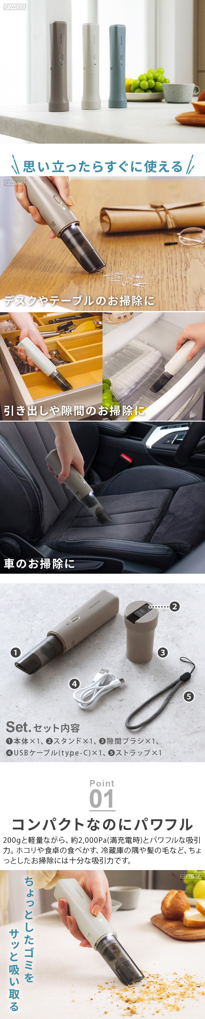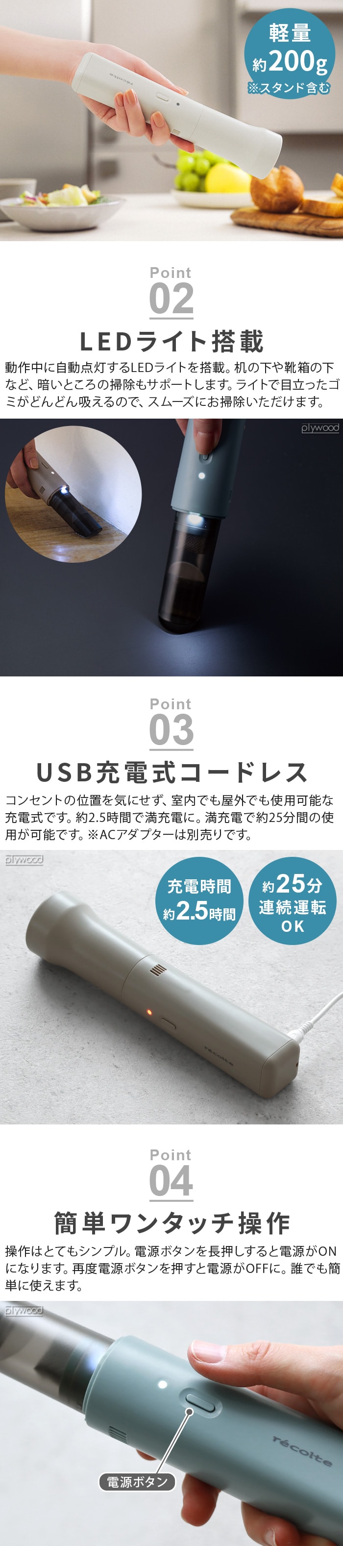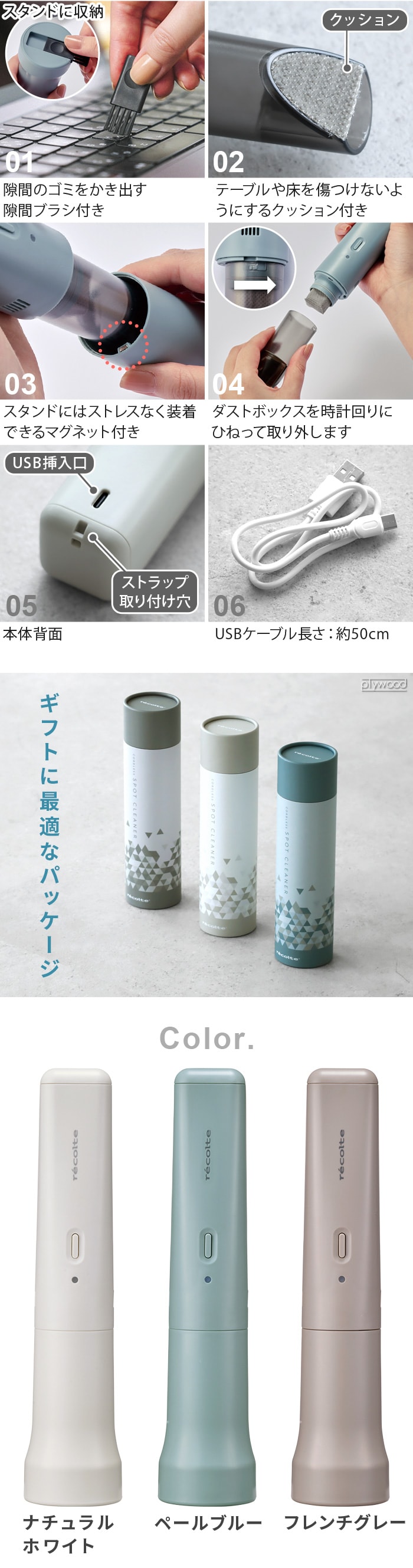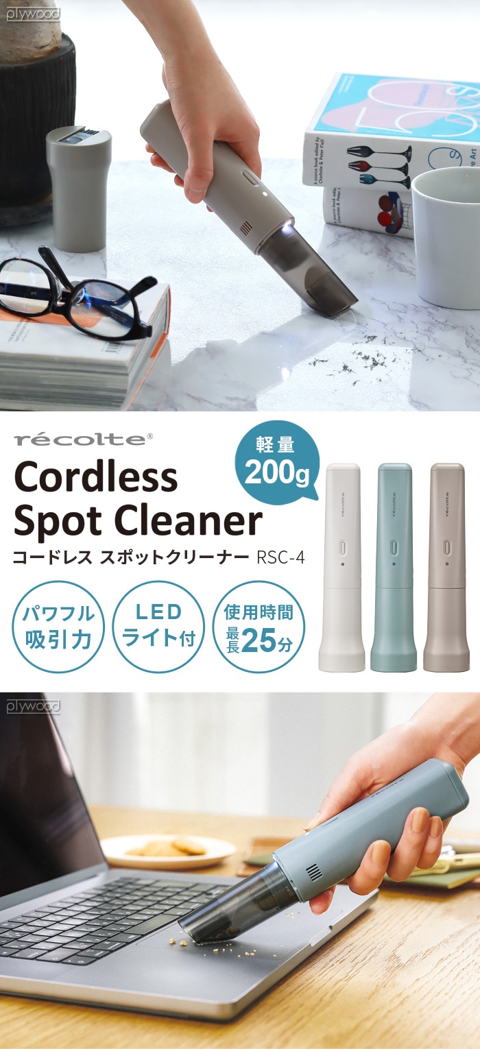 レコルト コードレス スポットクリーナー recolte Cordless Spot Cleaner ≪フレンチグレー RSC-4≫ ハンディ掃除機 コードレス 小型 ミニ 持ち運び おしゃれ 充電式 車 キーボード 大掃除 新生活 結婚祝い ギフト