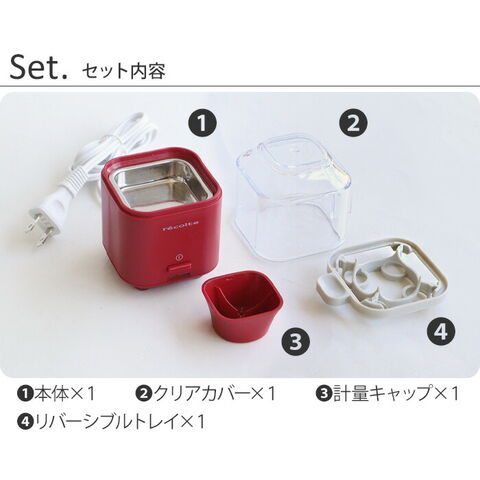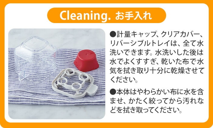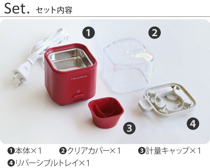 | 本体×1、クリアカバー×1、計量キャップ×1、リバーシブルトレイ×1 |