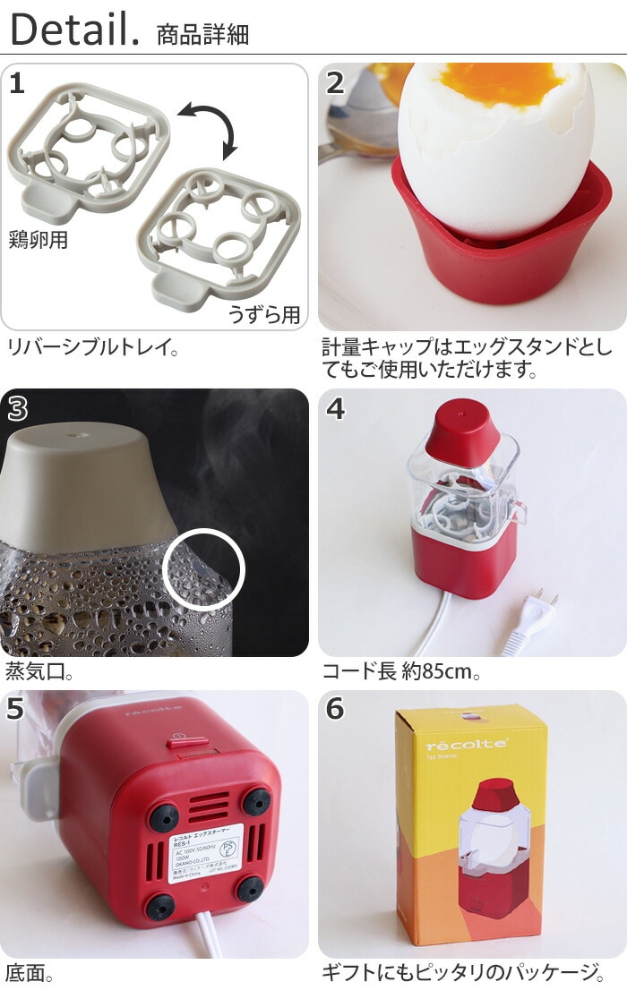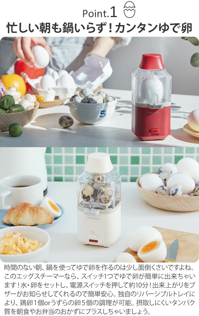 レコルト エッグスチーマー recolte Egg Steamer ≪ホワイト RES-1≫ ゆで卵メーカー ゆで卵器 茹で卵 うずらの卵 鶏卵 半熟 固ゆで キッチン家電 便利 コンパクト ギフト プレゼント