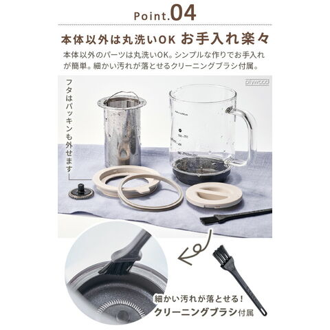 ・6つの調理モード搭載 ・ガラスカップの底面は焦げ付き・こびりつき防止のPFOA・PFOSフリーのフッ素樹脂コーティング ・本体以外は丸洗い可能 ・パッキンの取り外し可能 |