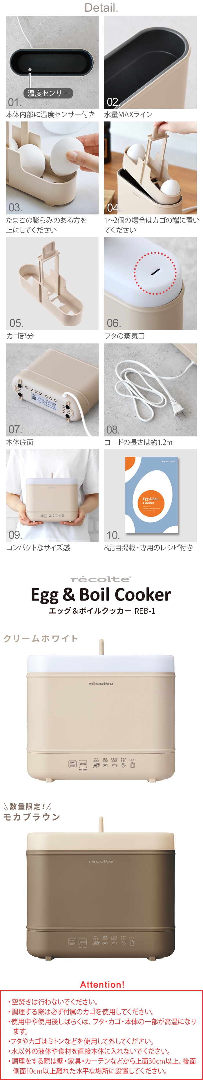 レコルト エッグ&ボイルクッカー recolte Egg&Boil Cooker ≪モカブラウン REB-1≫ 電気 ゆで卵メーカー 半熟 固ゆで 温泉たまご 4個 自動 サラダチキン 小型 低温調理 湯せん 調理器 だし巻 お弁当 おしゃれ ギフト