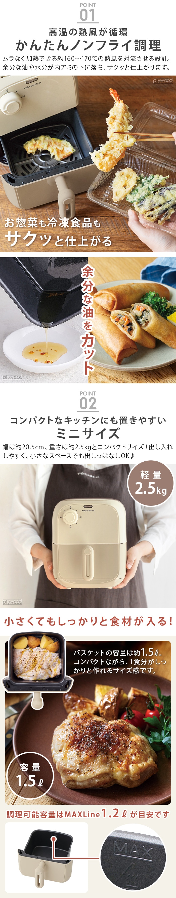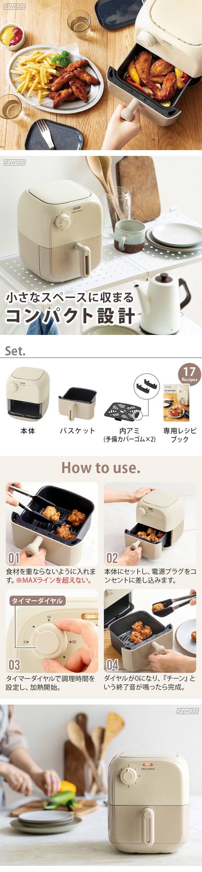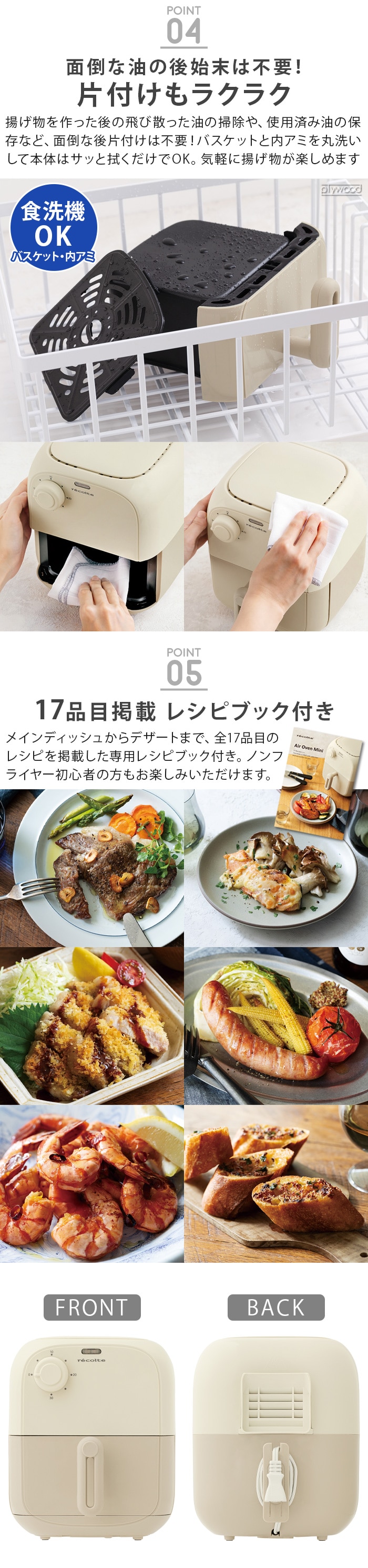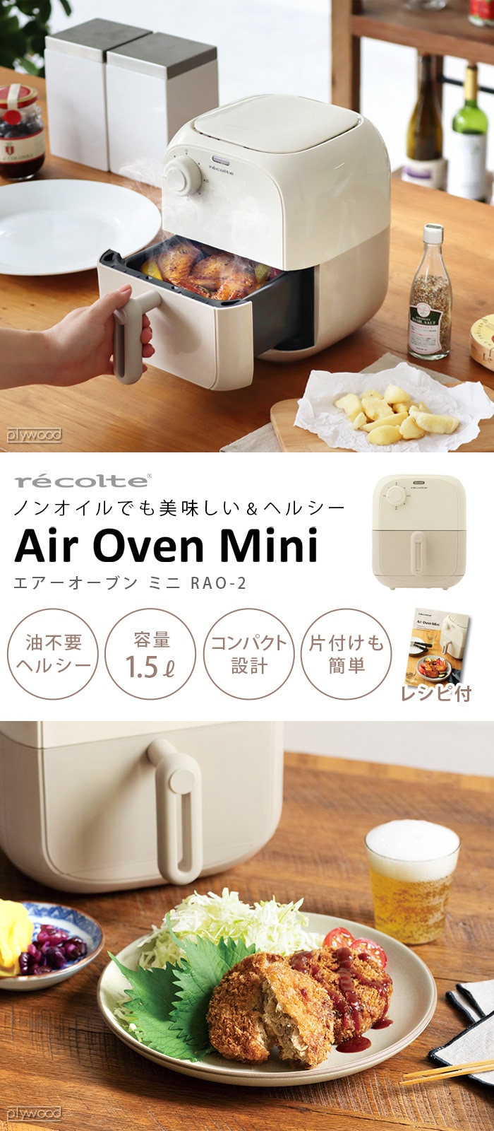 【レシピ&特典付】 レコルト エアーオーブン ミニ recolte Air Oven Mini ≪ホワイトベージュ RAO-2≫ 電気フライヤー レシピ付 家庭用 ノンフライヤー ノンオイル コンパクト 一人暮らし 調理家電 キッチン家電 温め直し 油を使わない ギフト