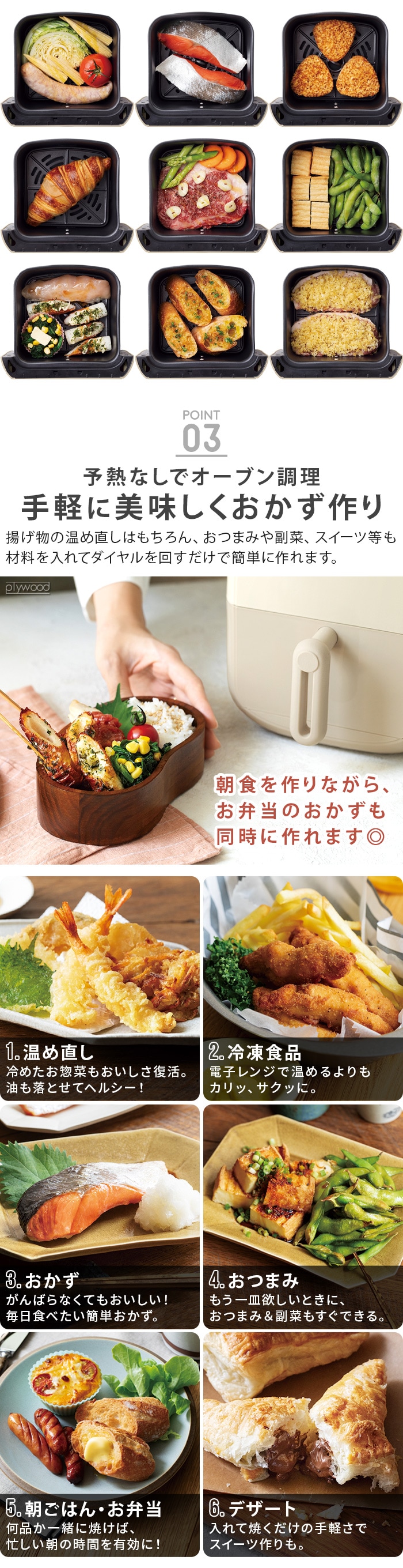 電源プラグは、交流100Vで「15A125V」と記されている壁面のコンセントに直接差し込む。 使用中は空気吹き出し口から熱風が出るため、十分な距離をとり、顔や手を近づけない。バスケットを取り出すときも注意する。 変形・破損などの異常や故障と思われる状態では使用を中止する。 お手入れは本体及びパーツが冷めてから行う。 壁や家具、熱に弱いものの近くで使わない。 壁、家具、カーテンから20cm以上離れた水平な場所に設置してください。前面は開放してください。 バスケットにMAXラインを超える食材を入れない。 10分以上、空焼きしない。 |