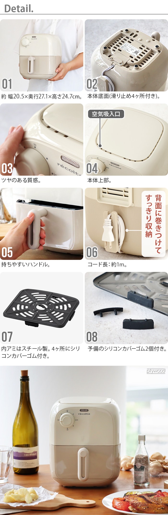 | 本体、バスケット、内アミ(予備カバーゴム×2)、専用レシピブック |