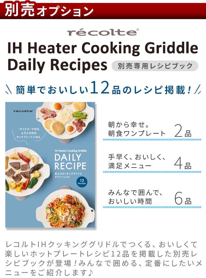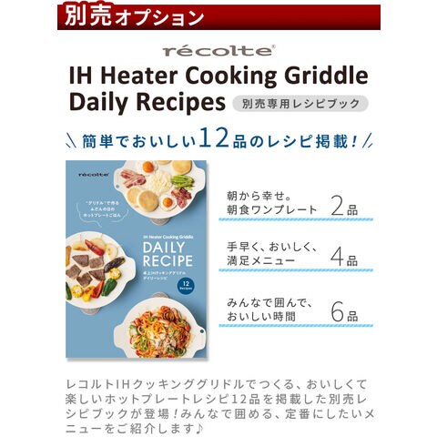 recolte IH クッキンググリドル専用 デイリーレシピ [本体別売り] ≪RIH-1RC1≫ レコルト ihコンロ 卓上 マルチグリドル ホットプレート 別売レシピブック 朝食プレート ホットケーキ ドリア ナポリタン お好み焼き 焼きそば 焼肉