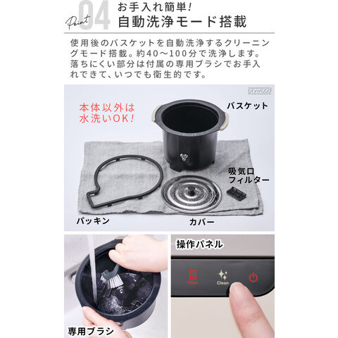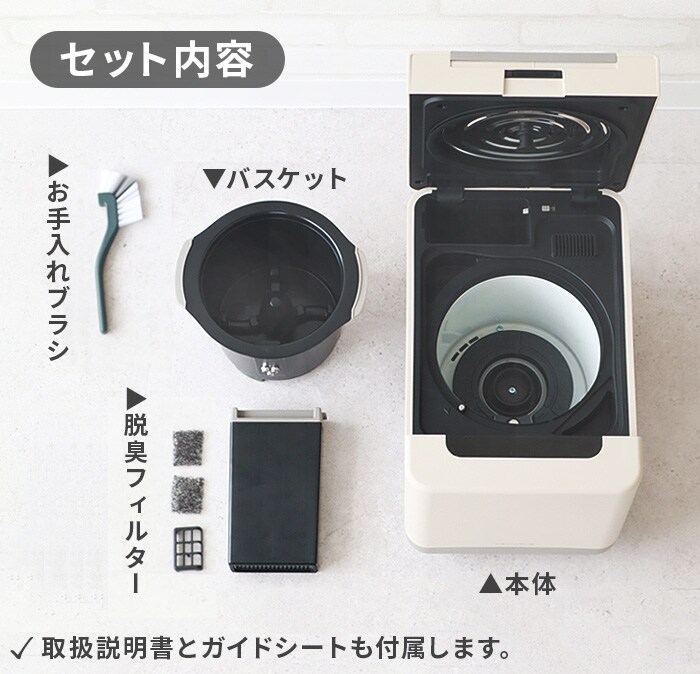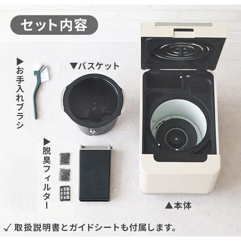| 本体・フタ:ポリプロピレン バスケット・羽根:アルミダイキャスト 脱臭フィルター:ポリプロピレン・活性炭 |