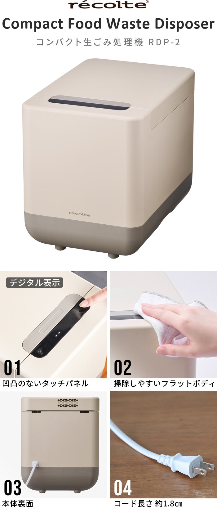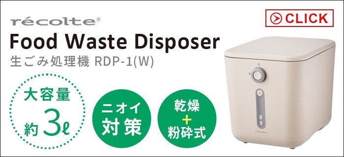 助成金対象 レコルト 生ごみ処理機 recolte Food Waste Disposer ≪クリームホワイト RDP-2≫ 乾燥式 ゴミ箱 脱臭フィルター 減量 コンパクト 軽量化 粉砕 におい 消臭 肥料 家庭用 キッチン家電