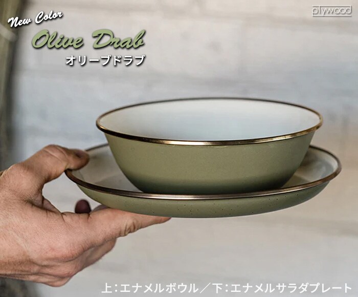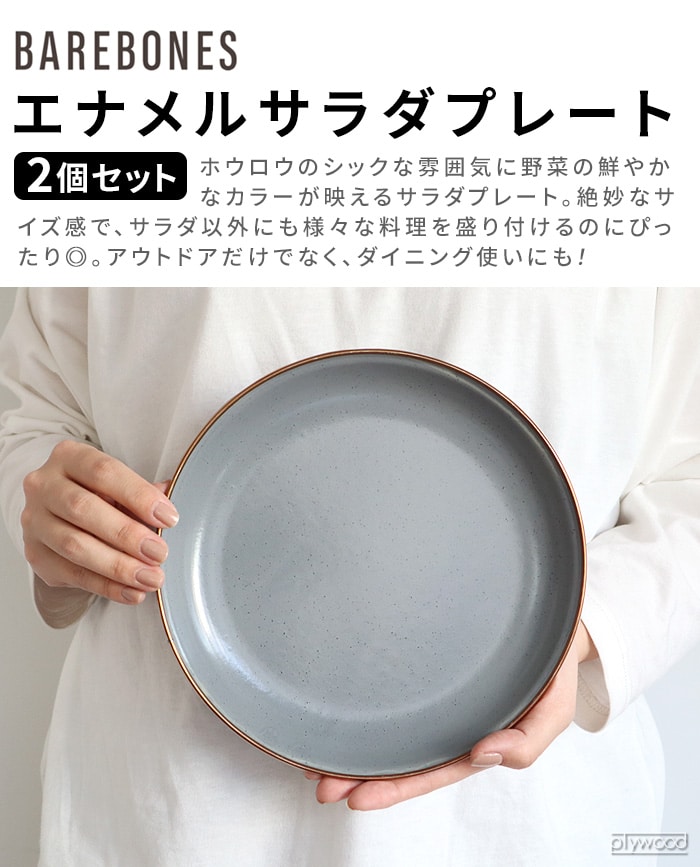 ベアボーンズ エナメル2トーン 8インチ サラダプレート 2枚セット Barebones ≪オリーブドラブ≫ プレート 食器 ホウロウ ツートーン