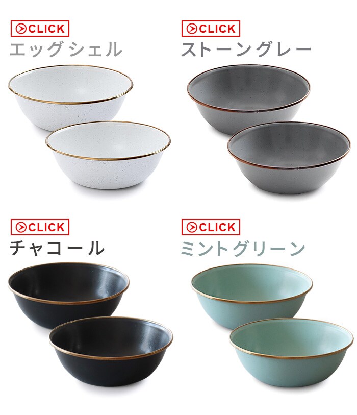 | ホウロウ加工には工程上、鋼板の切断部にあたるフチ部分や本体などに、形成跡や焼成時の吊るし跡・置き後、釉薬がかかりきらない場所があります。釉薬はムラやにじみなどの個体差が多少あります。それによりフチ部分の色が異なるセットになる場合がございます。またパッケージ包装用のシール跡が残る場合がございます(洗えばきれいになります)。以上、ご了承のうえご注文くださいませ。 |