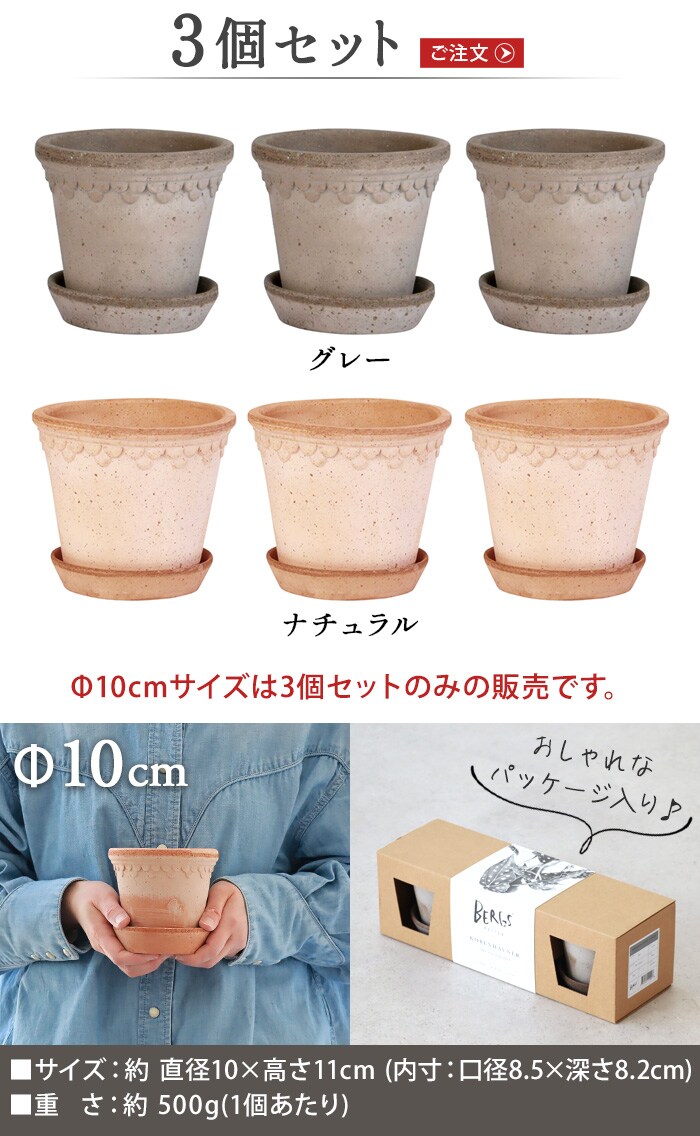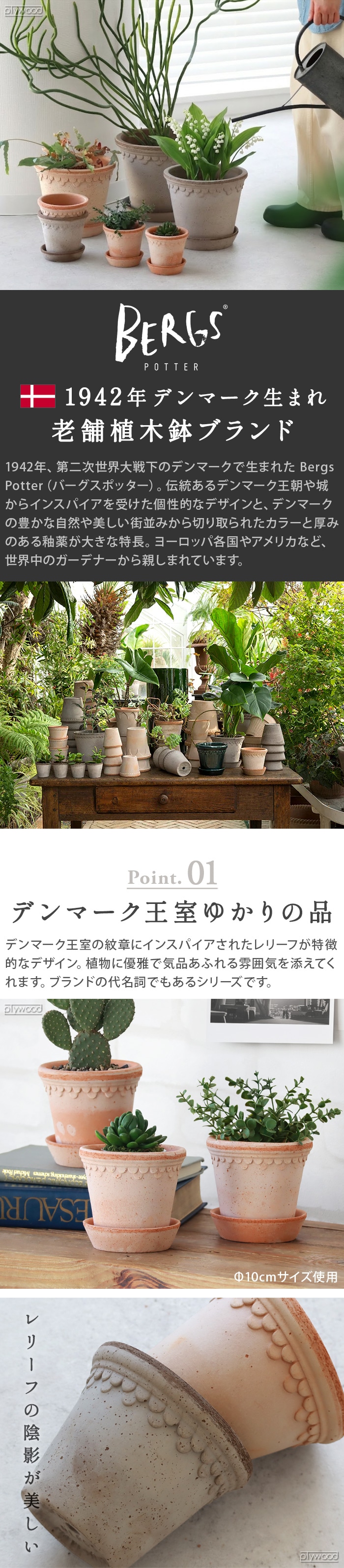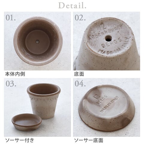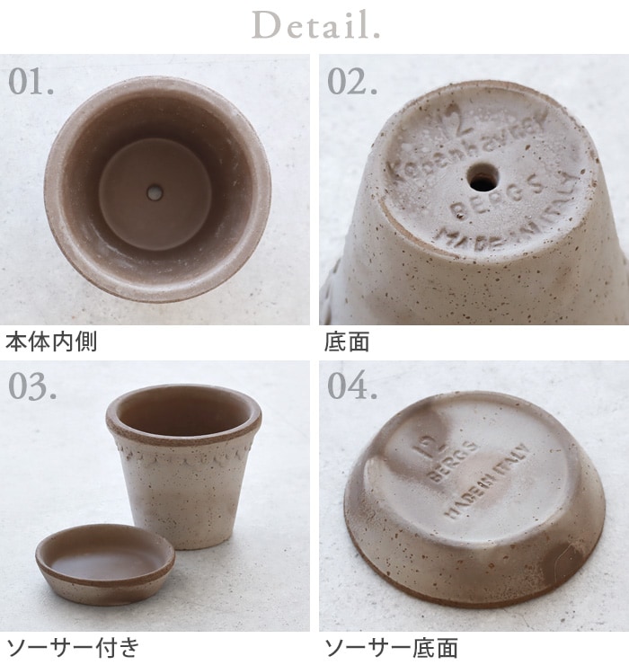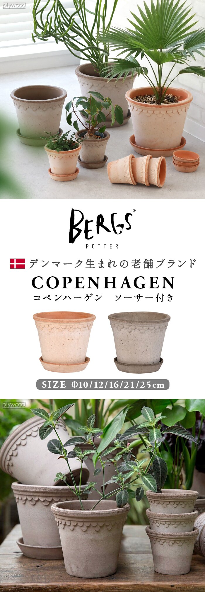 バーグスポッター コペンハーゲン ソーサー付き [16] BERGS POTTER COPENHAGEN ≪グレー 42854≫ 植木鉢 テラコッタ プランター おしゃれ 丸型 陶器 受け皿付き 素焼き デンマーク イタリア製 かわいい 鉢植え 花 ガーデニング