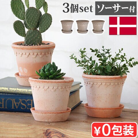 BERGS POTTER バーグスポッター COPENHAGEN コペンハーゲン 3パック ソーサー付き ≪ナチュラル 45500≫ 植木鉢 素焼き プランター おしゃれ 丸型 陶器 テラコッタ デンマーク イタリア製 かわいい 鉢植え 花 ガーデニング 観葉植物 ギフト