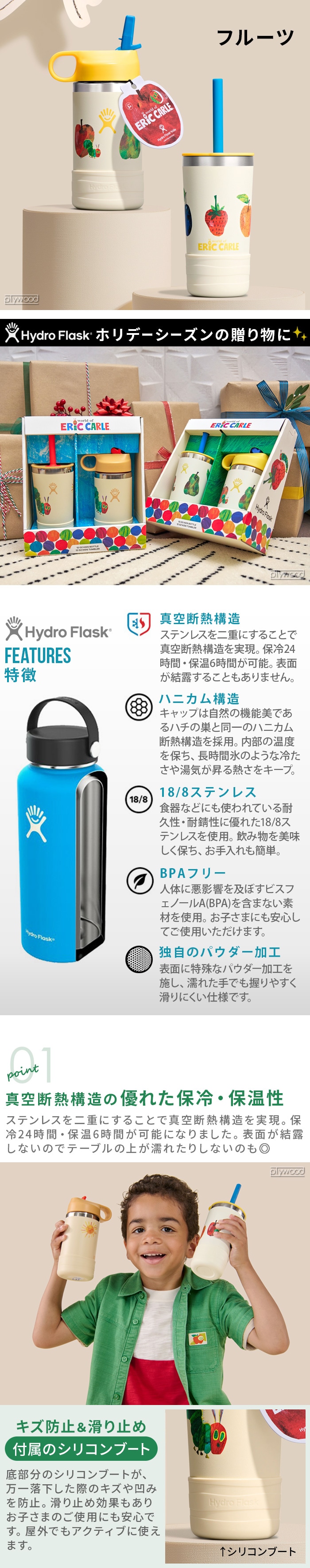 数量限定 ハイドロフラスク キッズ ワイドマウス ボトル 354ml エリックカール 限定コレクション Hydro Flask ERIC CARLE KIDS WIDE MOUTH BOTTLE 12oz ≪はらぺこあおむし≫ 水筒 ストロー 直飲み 子供用