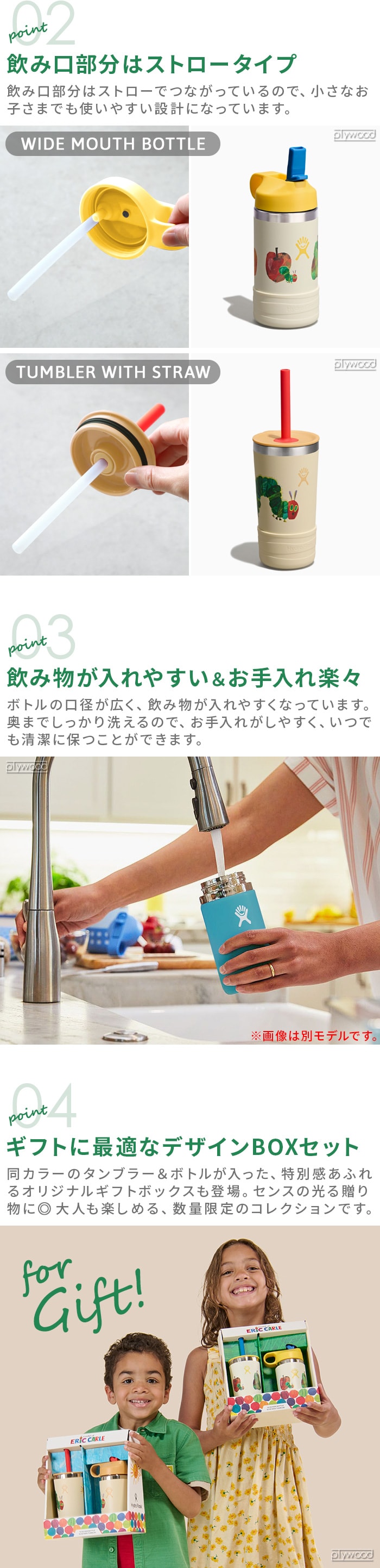 ![]() 数量限定「はらぺこあおむし」 モデルが登場! 名作「はらぺこあおむし」をはじめ、長年絵本作家兼アーティストとして愛され続けてきたエリック・カールと、ハイドロフラスクのコラボレーションが実現!KIDSの12ozサイズのワイドマウスとストロー付きタンブラーの2型に加え、ギフトにおすすめのオリジナルBOXセットも展開。 ![]() ![]() ![]() ![]() ![]() ![]() ![]() ![]() ![]() ![]() ![]()