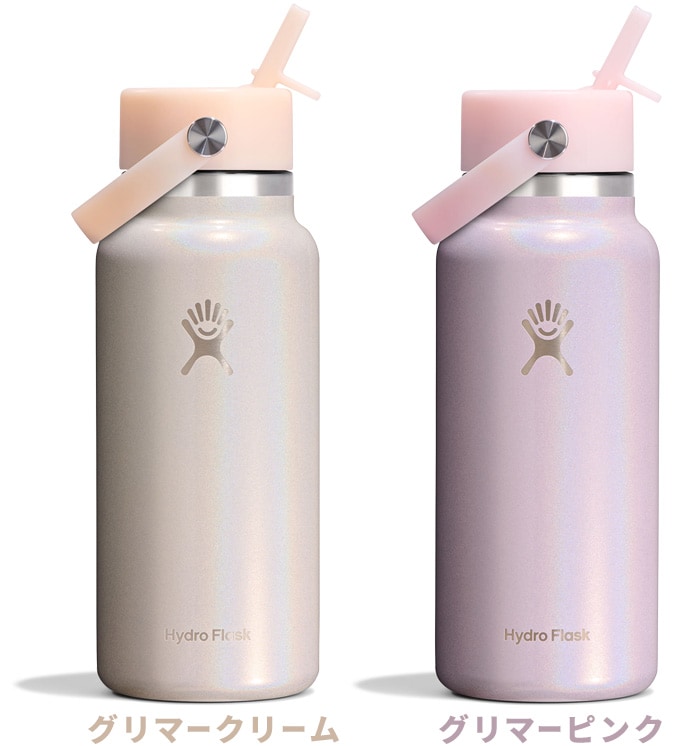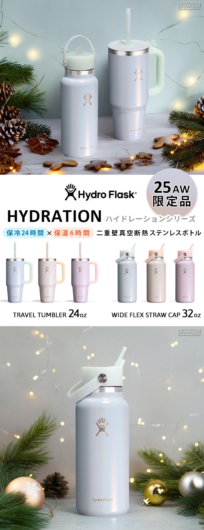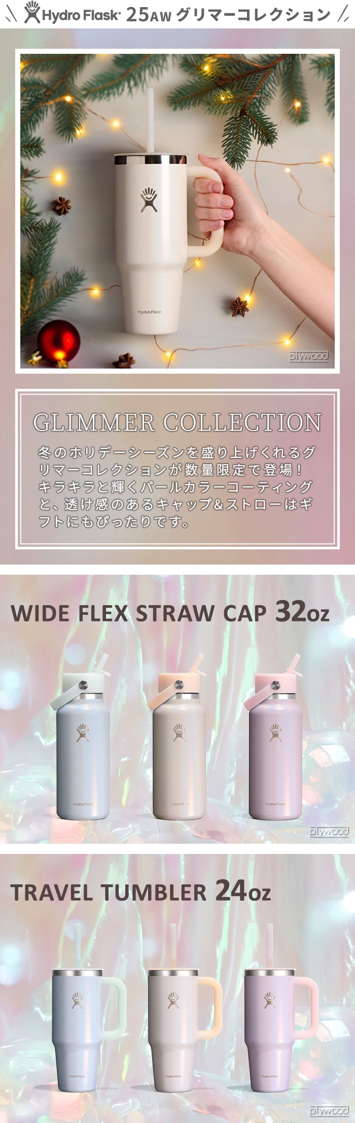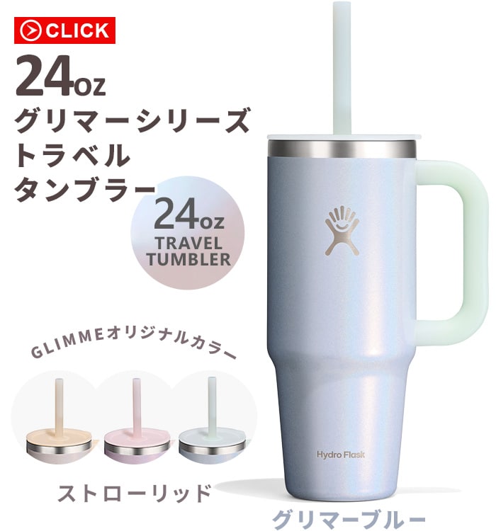限定カラー ハイドロフラスク グリマー トラベル タンブラー 709ml Hydro Flask GLIMMER TRAVEL TUMBLER 24oz ≪グリマークリーム≫ ストロー付き かわいい 保冷 保温 おしゃれ 持ち運び ステンレス 水筒 軽量 マイボトル ギフト